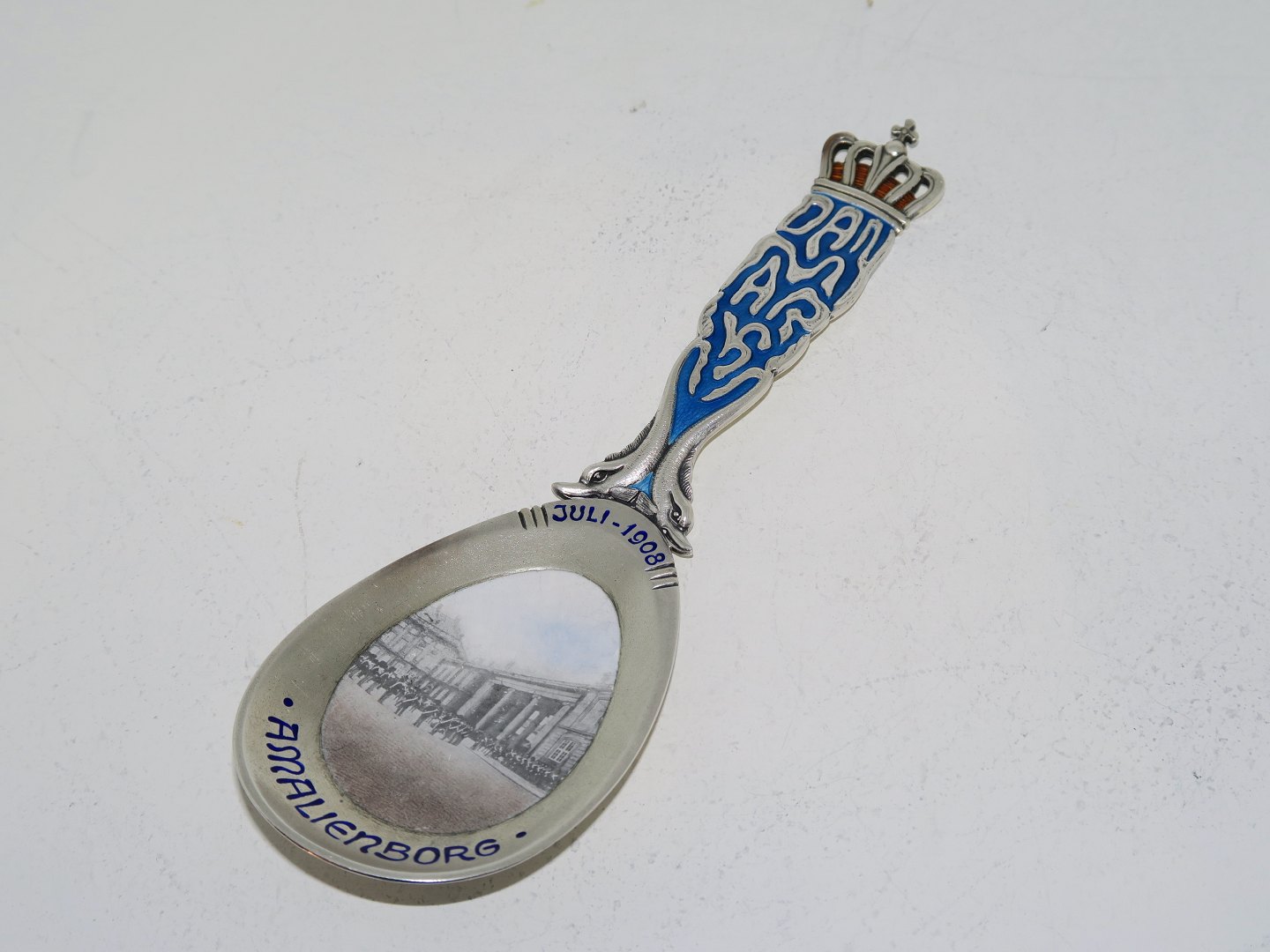 Peter Hertz sterling silver with enamel, commemorative spoon from 1908.