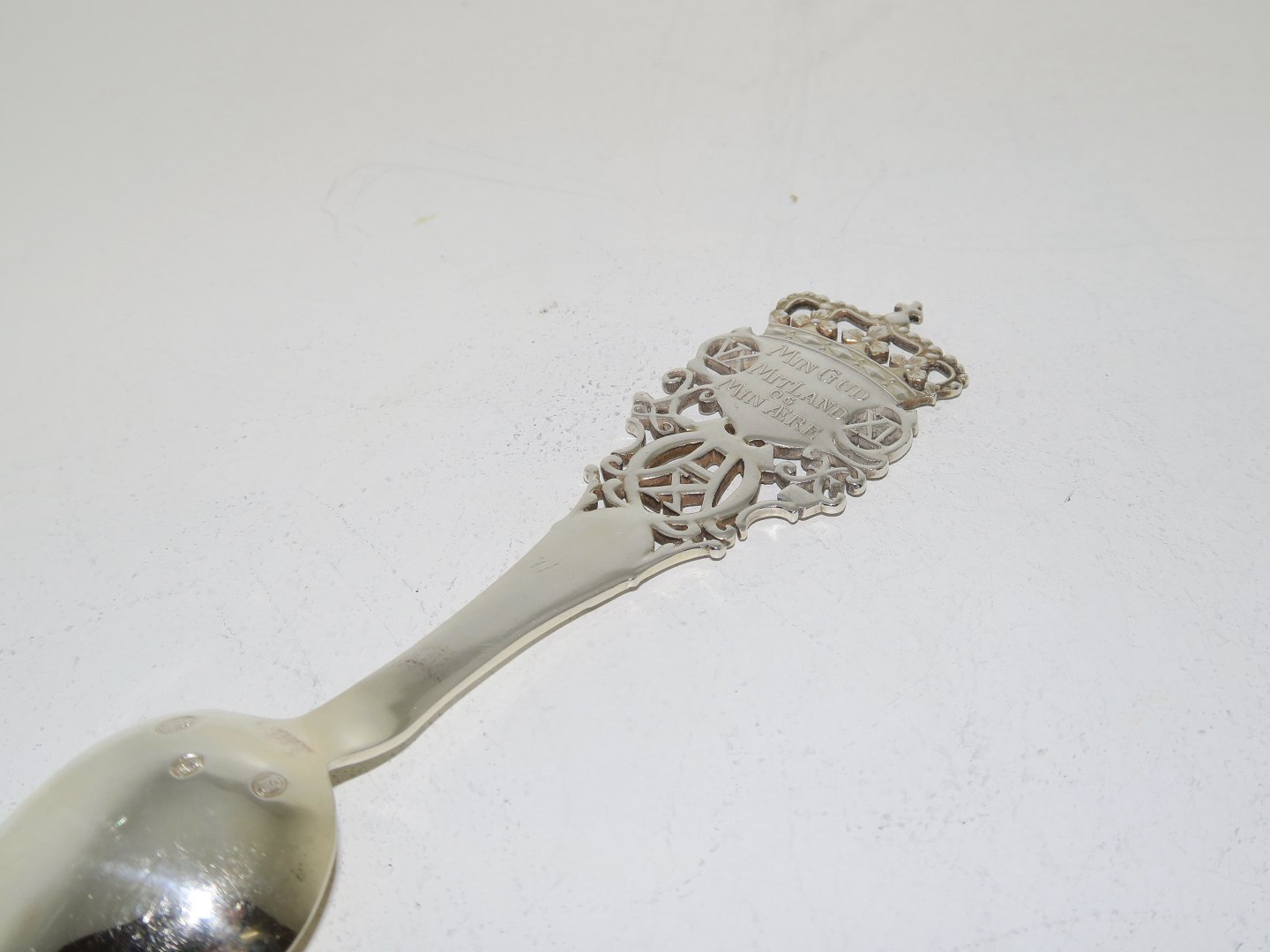Anton Michelsen guilded sterling silver, commemorative spoon from 1912. The crowning of King Christian X on May 15th. 1912. Designed by Hans Tegner. Length 15.5 cm. Excellent condition.