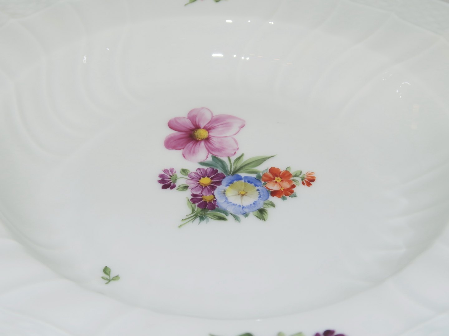 Royal Copenhagen Let Saksisk Blomst, dyb tallerken. Dekorationsnummer 493/1614. 2. sortering. Diameter 24,5 cm. Perfekt stand uden fejl.