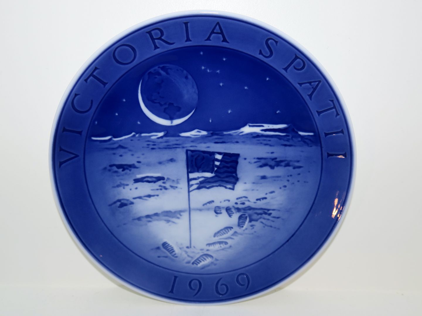 Royal Copenhagen Mindeplatte, USA Månelandingen 1969 - Victoria Spatii. Diameter 18,5 cm. 1. sortering. Perfekt stand.