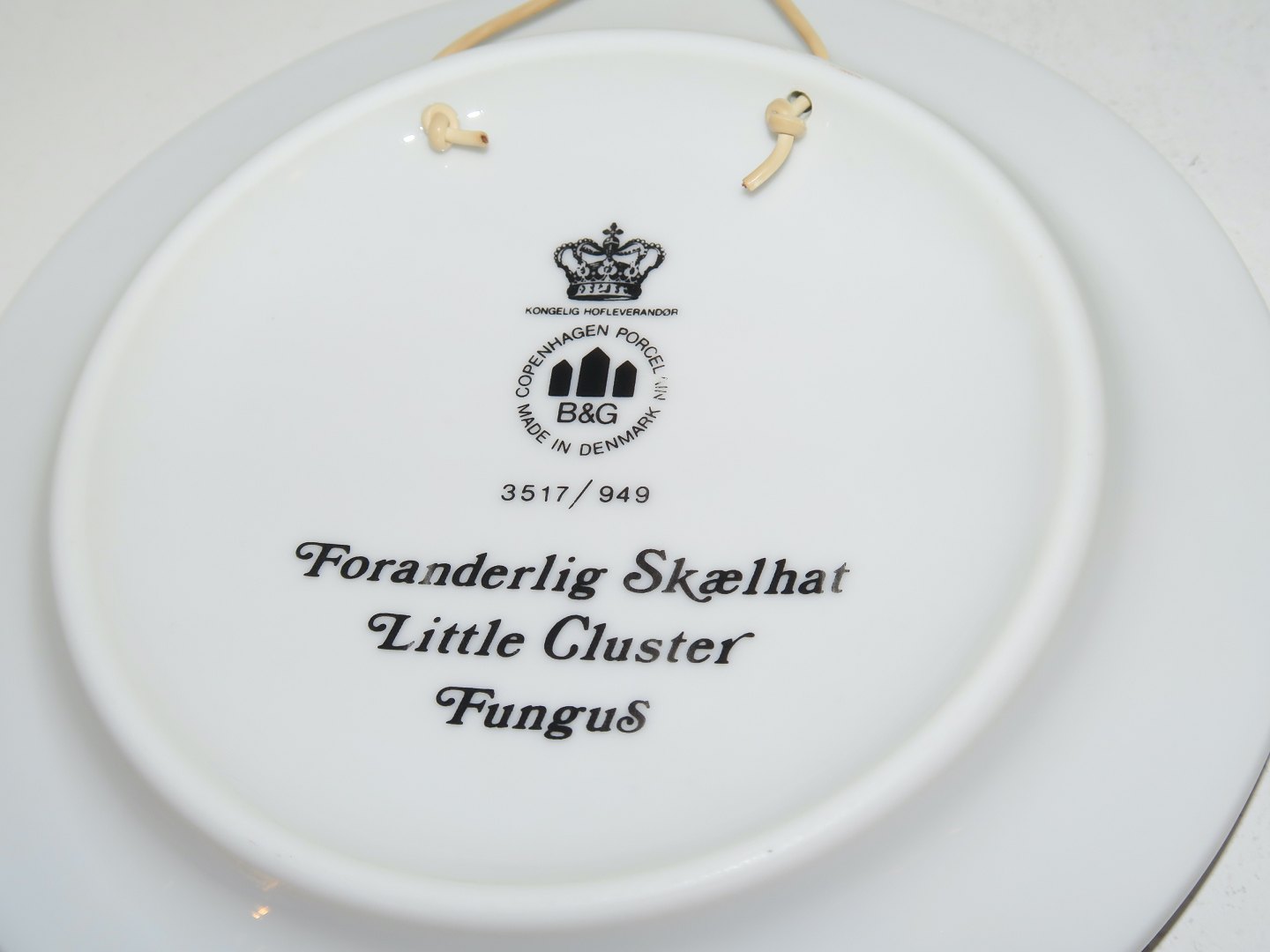 Bing & Grøndahl svampeplatte, Foranderlig Skælhat. Dekorationsnummer 3517/949. 3. sortering. Diameter 14,8 cm. Perfekt stand uden fejl.