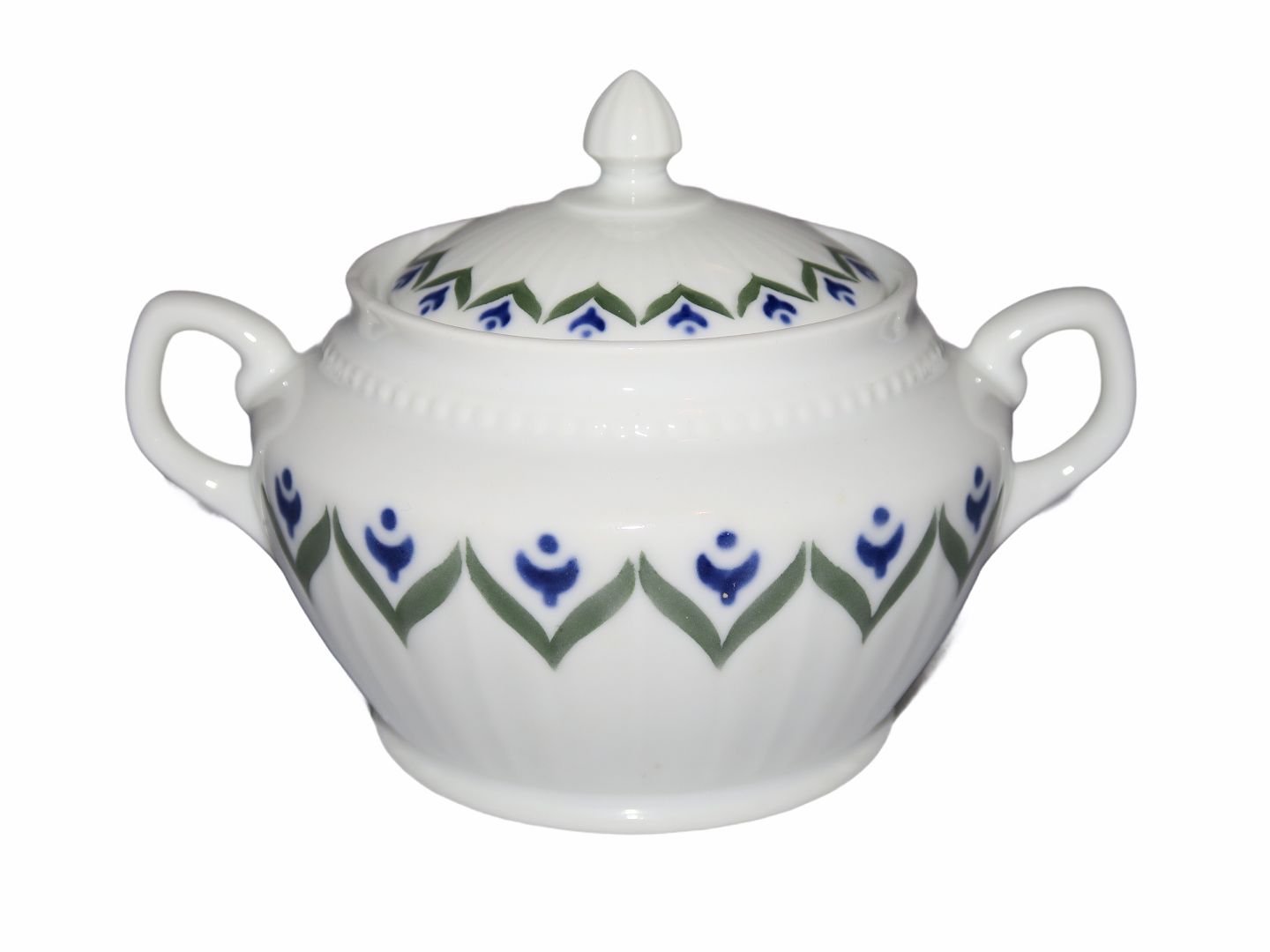 Bing & Grøndahl Sukkerskål med grøn og blå dekoration.