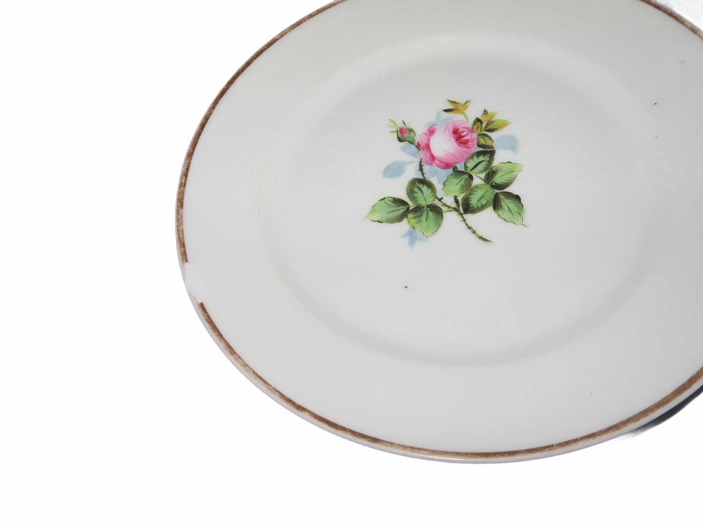 One plate has a chip and there is slight wear on the gold eges, otherwise perfect condition with no chips, cracks or repairs.