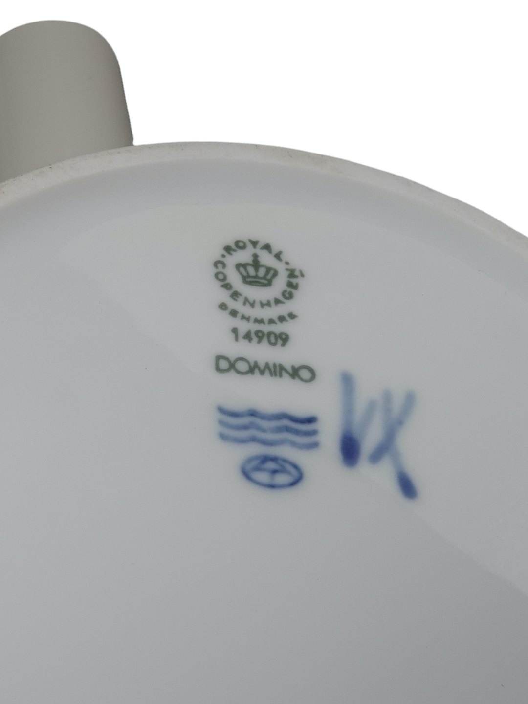 Royal Copenhagen Domino, sovseskål / sovsekande. Fabriksmærket viser, at denne er fra mellem 1969 og 1974. Dekorationsnummer 14909. 1. sortering. Længde 19,8 cm. Perfekt stand uden fejl.