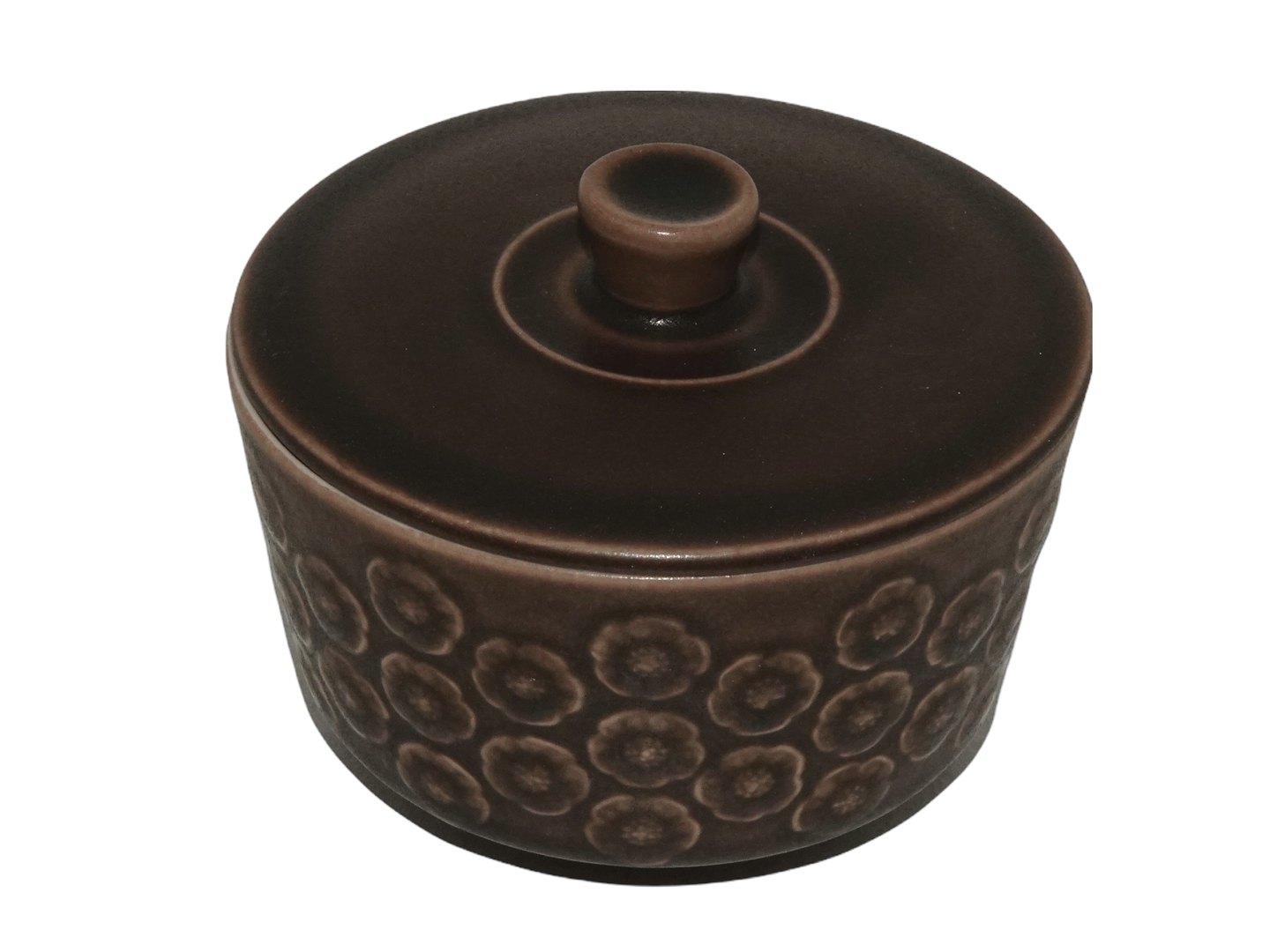 Kronjyden/Bing & Grøndahl Umbra stentøj, sukkerskål med låg. Designet af Jens Harald Quistgaard. Diameter 9,0 cm. Perfekt stand uden fejl.