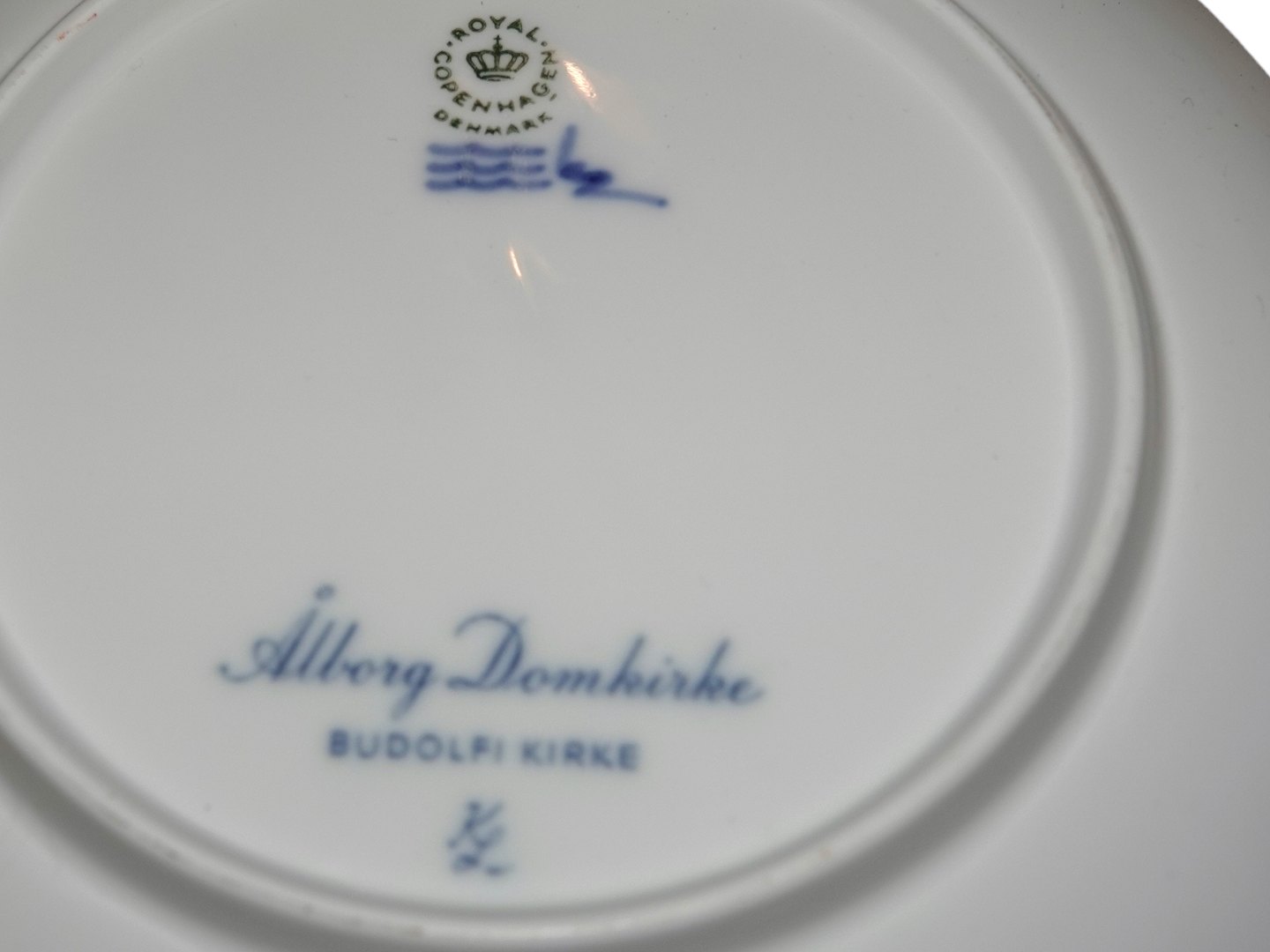 Royal Copenhagen platte, Aalborg Domkirke. Bemærk at denne vare kun er på vores lager. Ring eller skriv, hvis du vil se varen i forretningen. 2. sortering. Diameter 18,0 cm. Perfekt stand uden fejl.