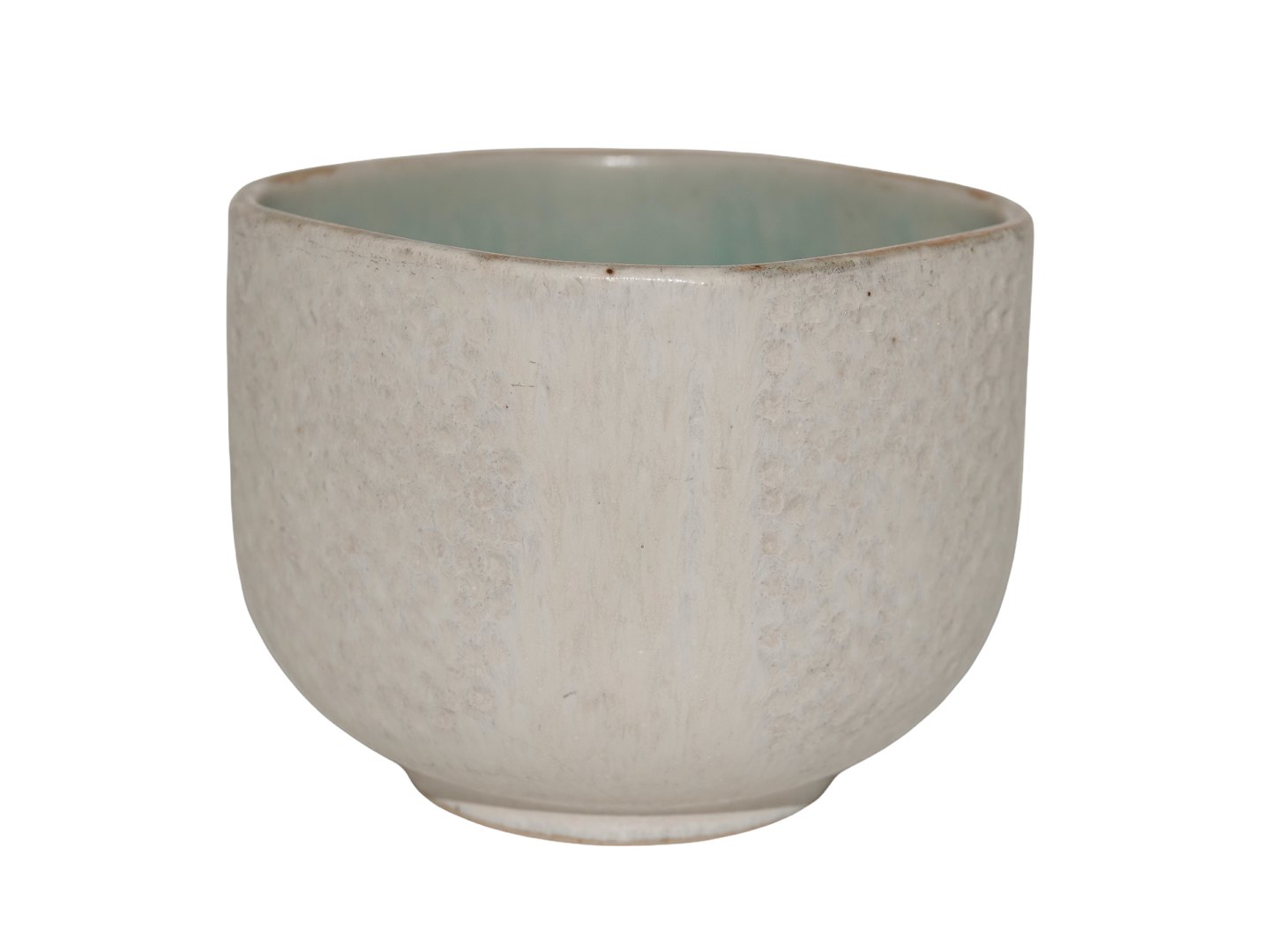Saxbo keramik, krukke med lys glasur på ydersiden og grøn indvendigt.