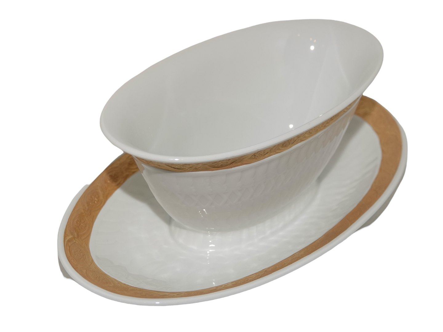 Royal Copenhagen Guld Vifte, sovseskål. Dekorationsnummer 414/11550. 1. sortering. Længde 22,0 cm. Perfekt stand uden fejl. Meget velholdt.
