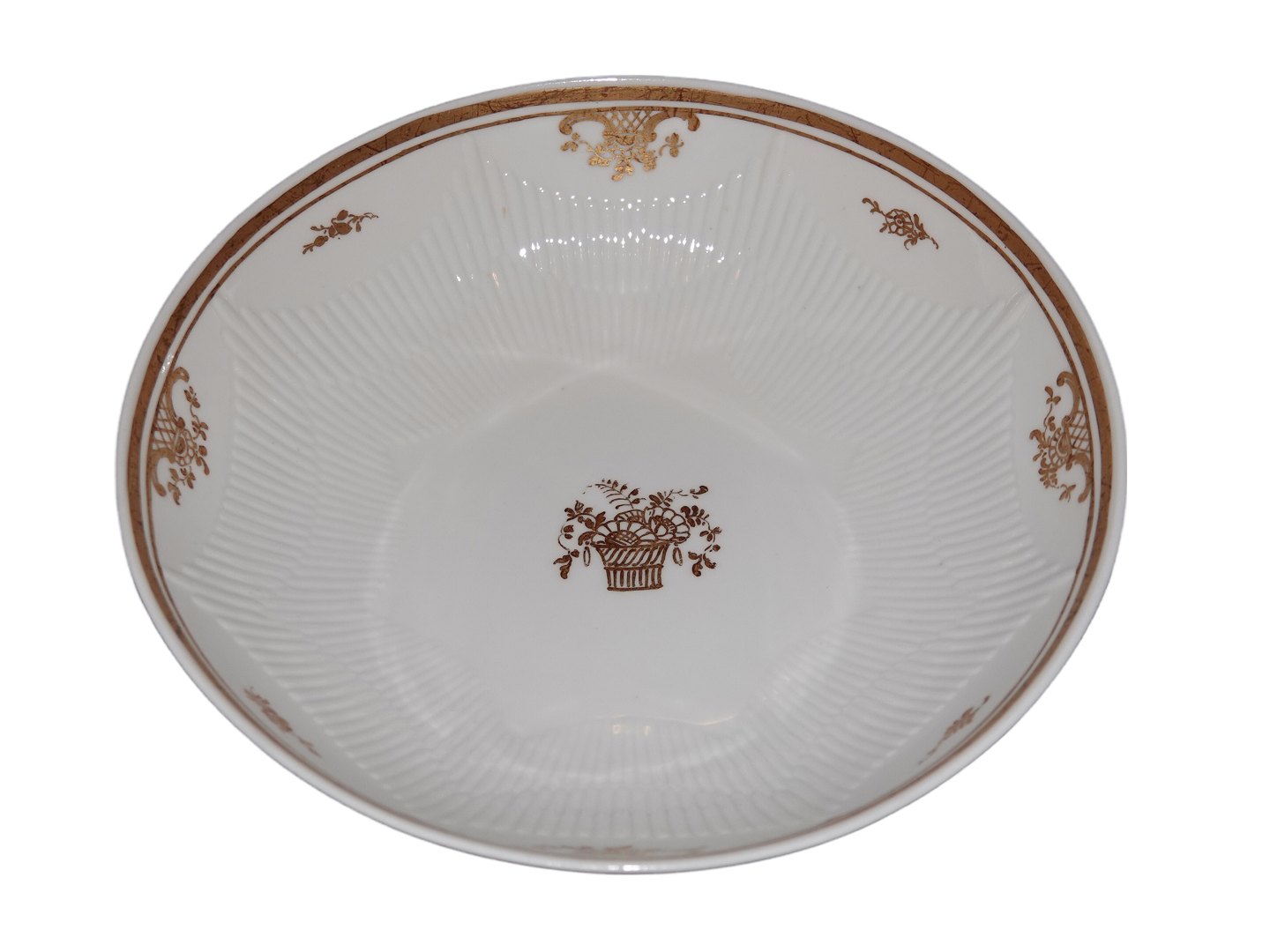 Royal Copenhagen Guldkurv med Ornamenter og Små Blomster, rund kartoffelskål.