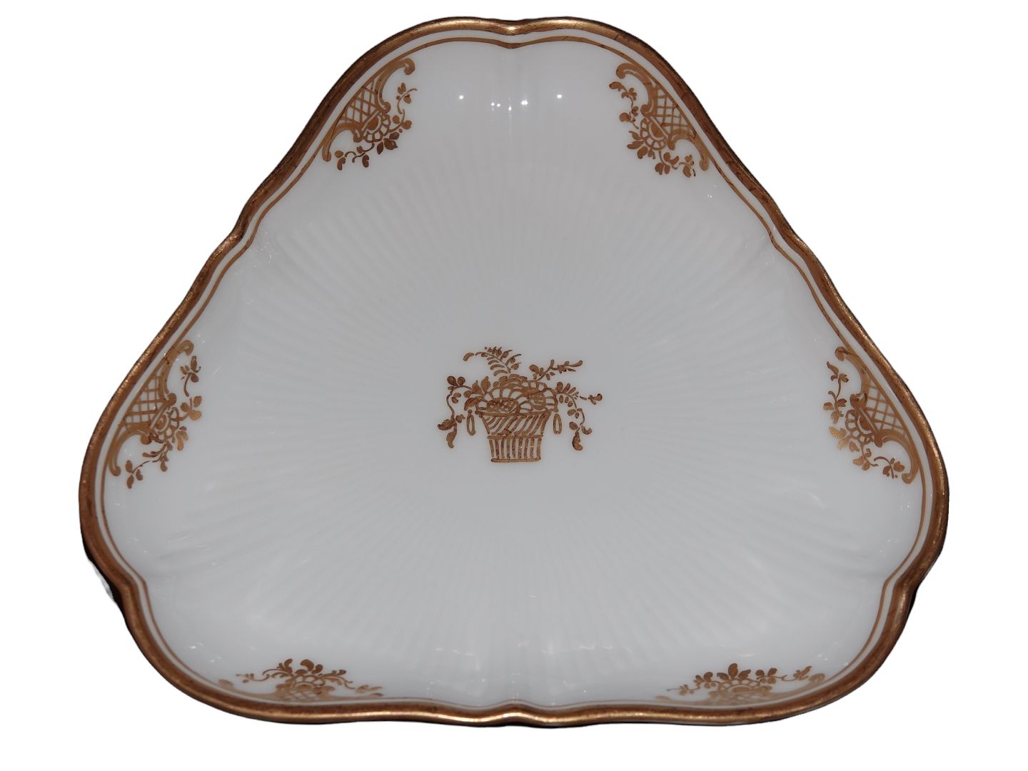 Royal Copenhagen Guldkurv med Ornamenter og Små Blomster, lille trekantet fad.