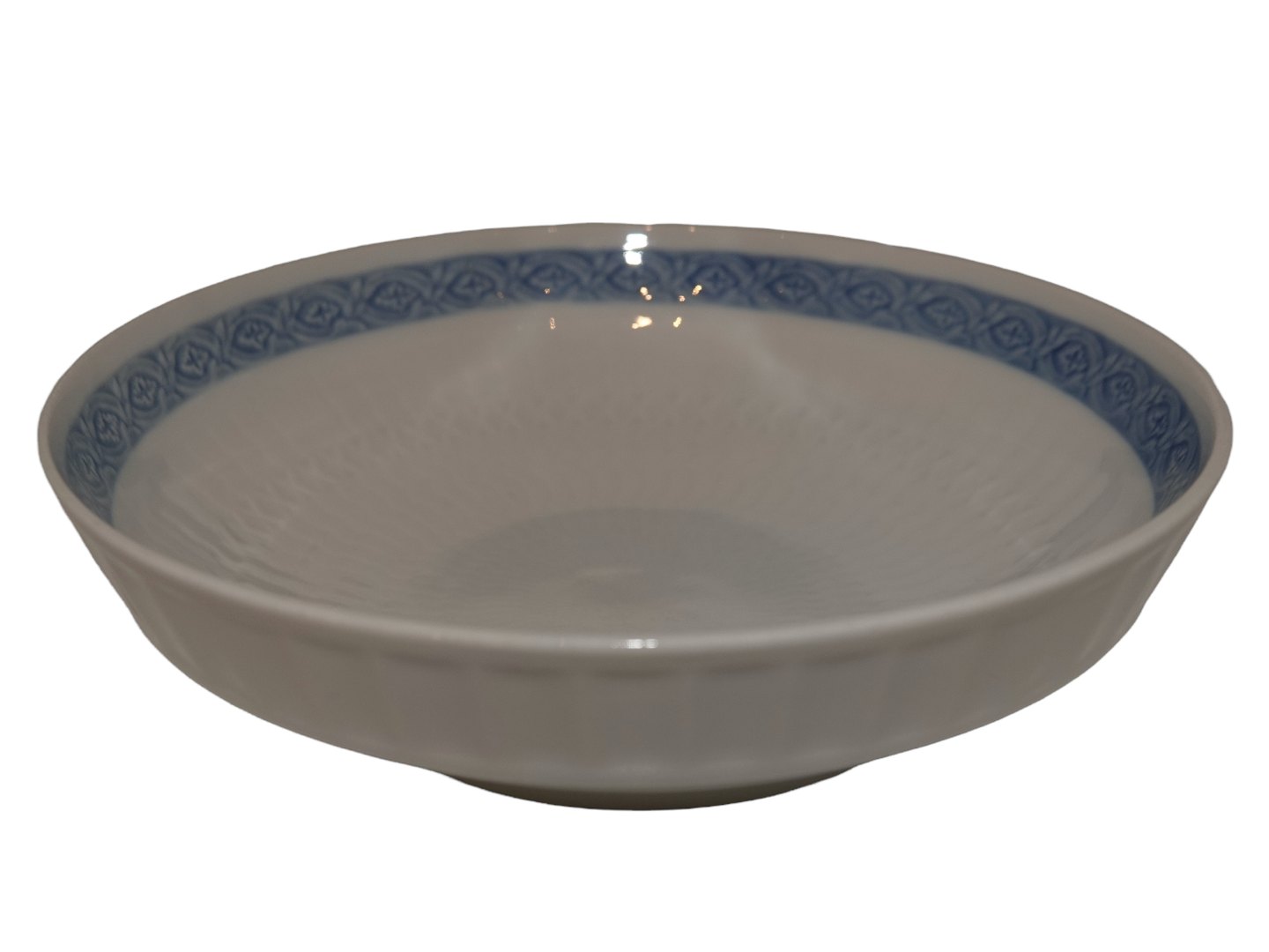 Royal Copenhagen Blå Vifte, lille rund skål. Designet af Arnold Krog i 1909. Dekorationsnummer 1212/11525. 3. sortering. Diameter 17,5 cm. Der er en lille smule slid i glasuren ellers perfekt stand uden fejl.