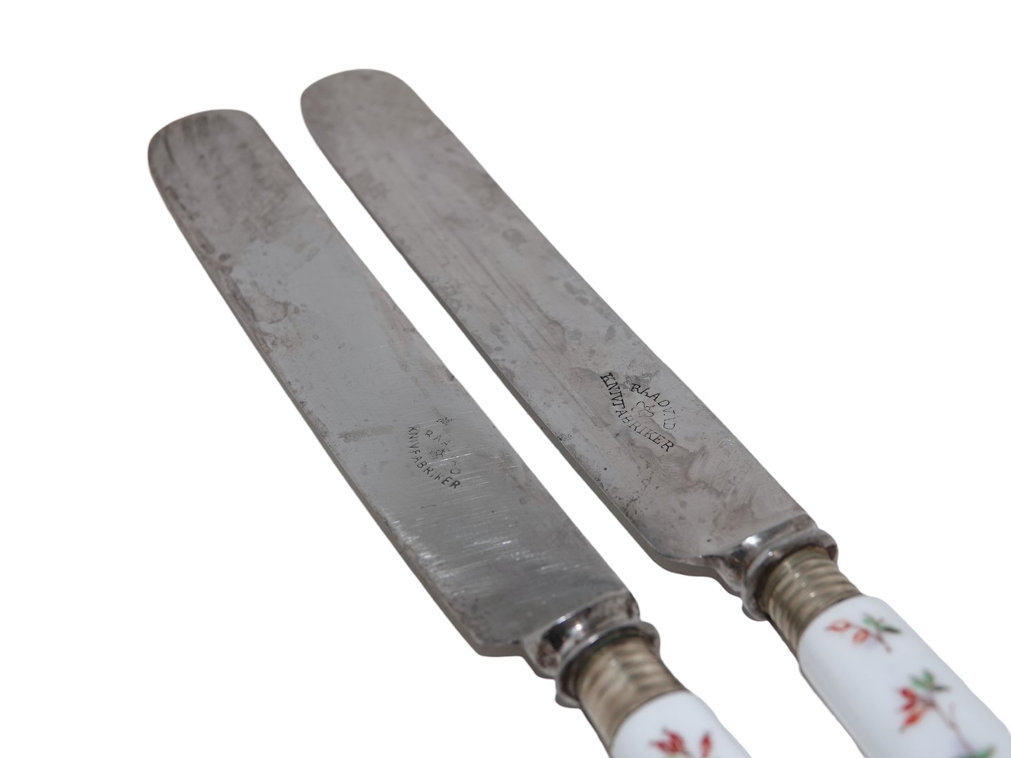 Royal Copenhagen Berberis, lang middagskniv med originalt Raadvad knivblad. Længde 26,5 cm., hvoraf bladet måler 15,7 cm. Der er lidt mærker på knivbladet ellers perfekt stand.