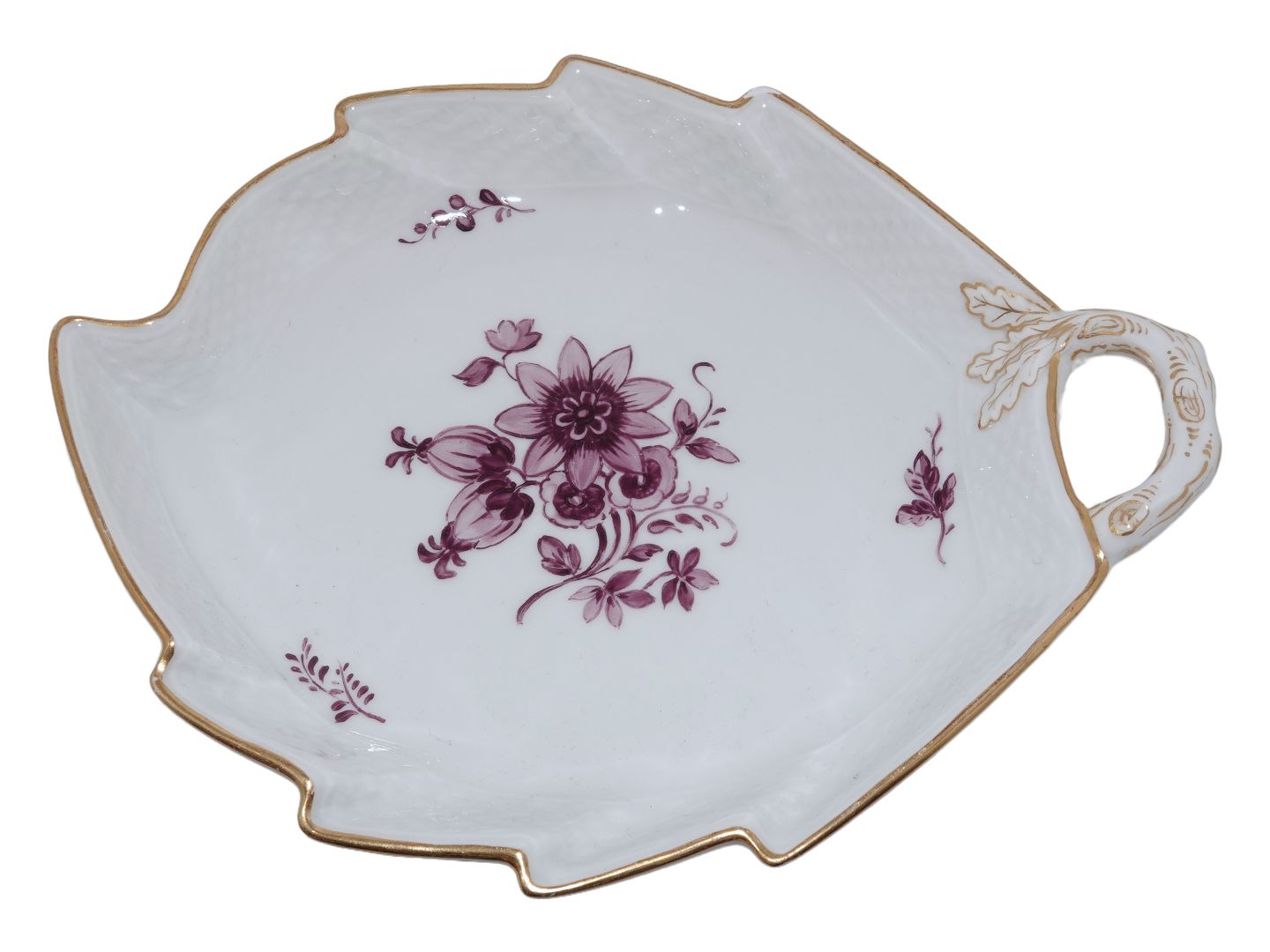 Royal Copenhagen Purpur Flettet, kagefad. Dekorationsnummer 498/8002. Denne er produceret mellem 1894 og 1928. 2. sortering. Længde 22,3 cm. Perfekt stand uden fejl.