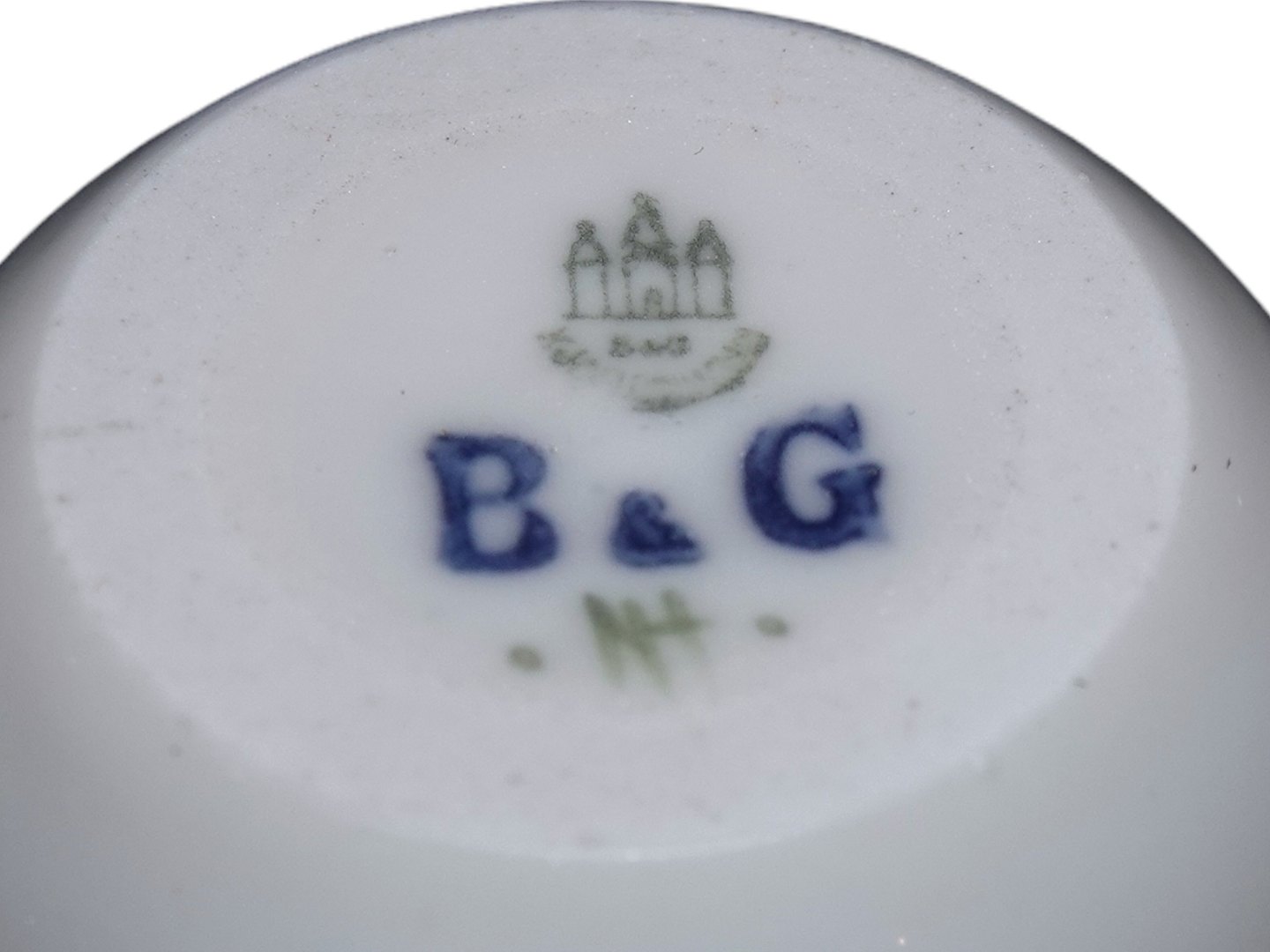 Bing & Grøndahl Art Nouveau bordkortholder med blå klokkeblomster. Af fabriksmærket kan det udledes, at denne er produceret mellem 1915 og 1948. Måler 5,0 cm. 1. sortering. Perfekt stand uden fejl.