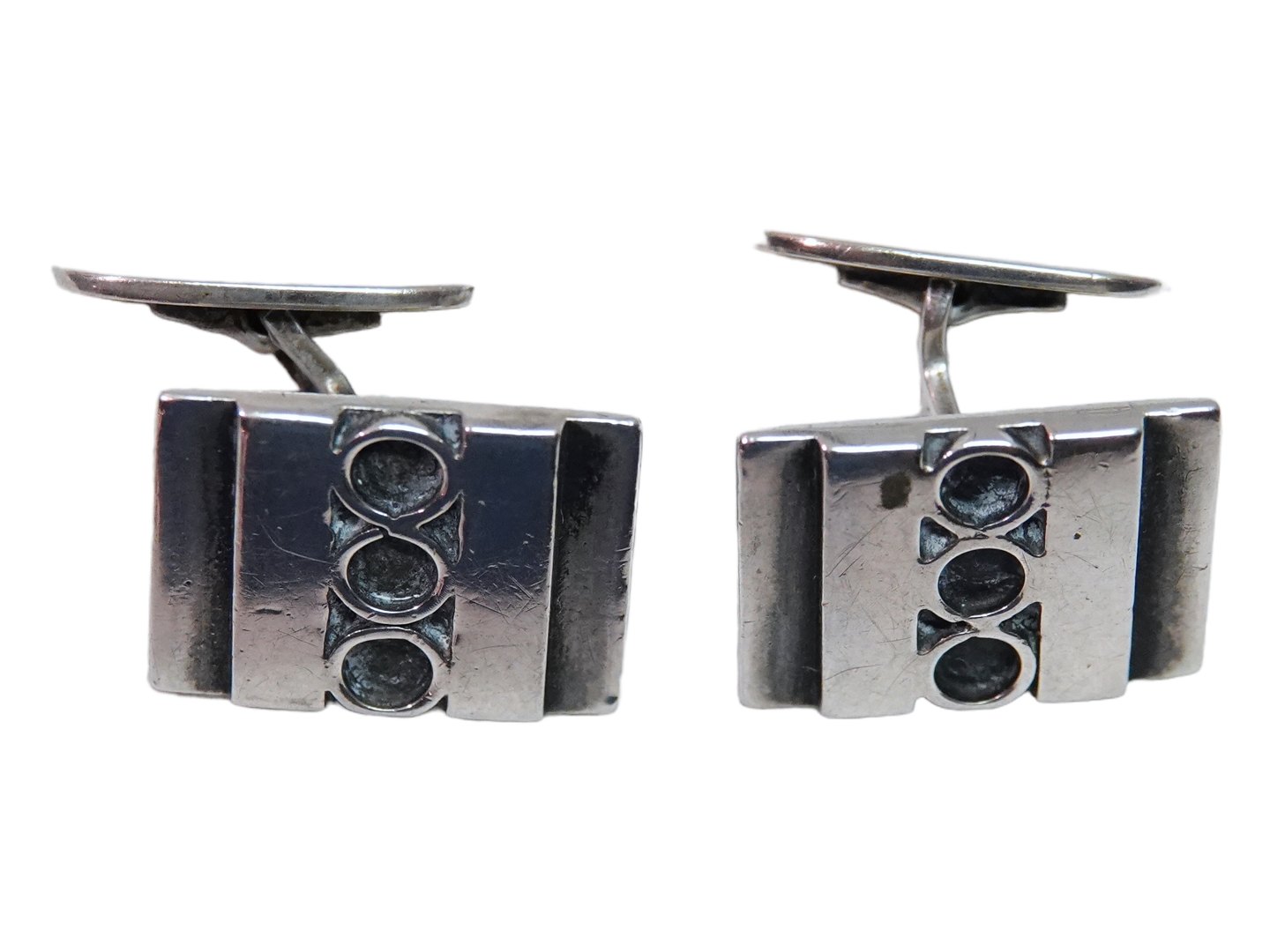 Par manchetknapper i sølv fra ca. 1940 til 1960. Stemplet "830S". Selve manchetten måler 2,0 cm. x 1,4 cm. Velholdt stand.