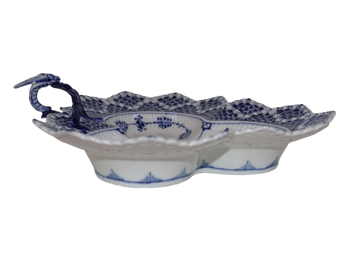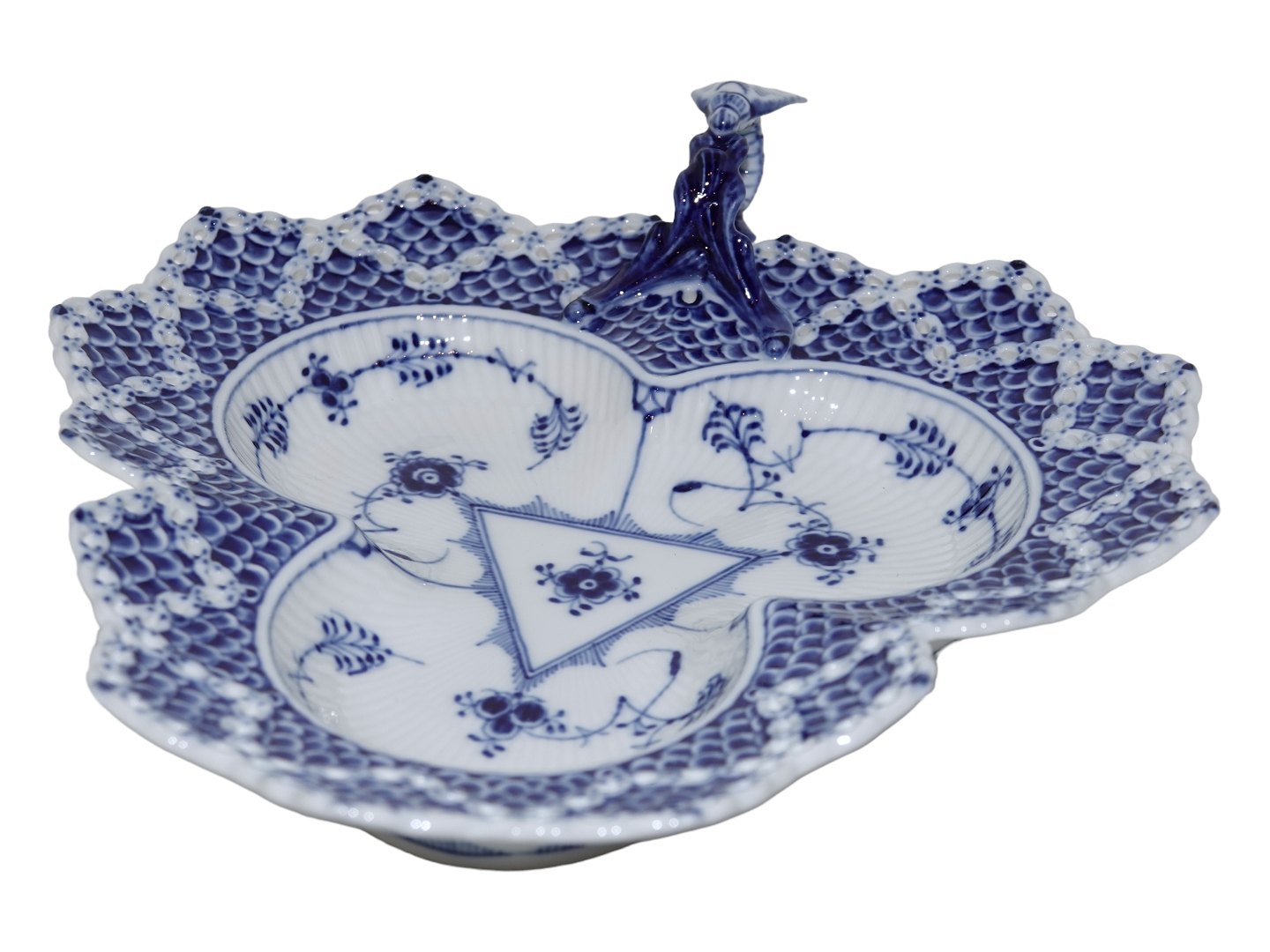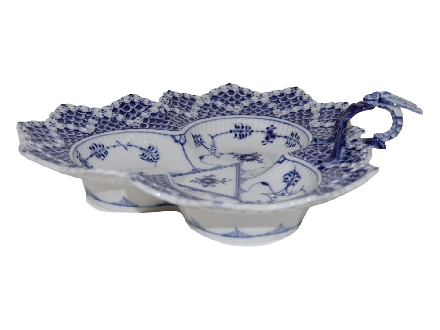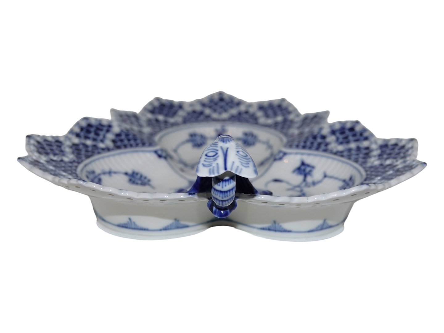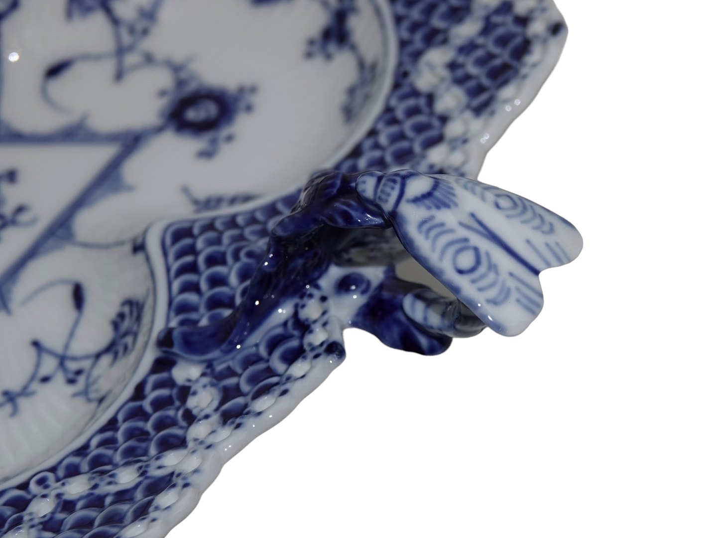 Royal Copenhagen Musselmalet Helblonde, fad med insekt. Dekorationsnummer 1/1077. Denne er produceret i mellem 1980 ig 1984. 3. sortering. Måler 24,7 x 22,5 cm. Perfekt stand uden fejl.