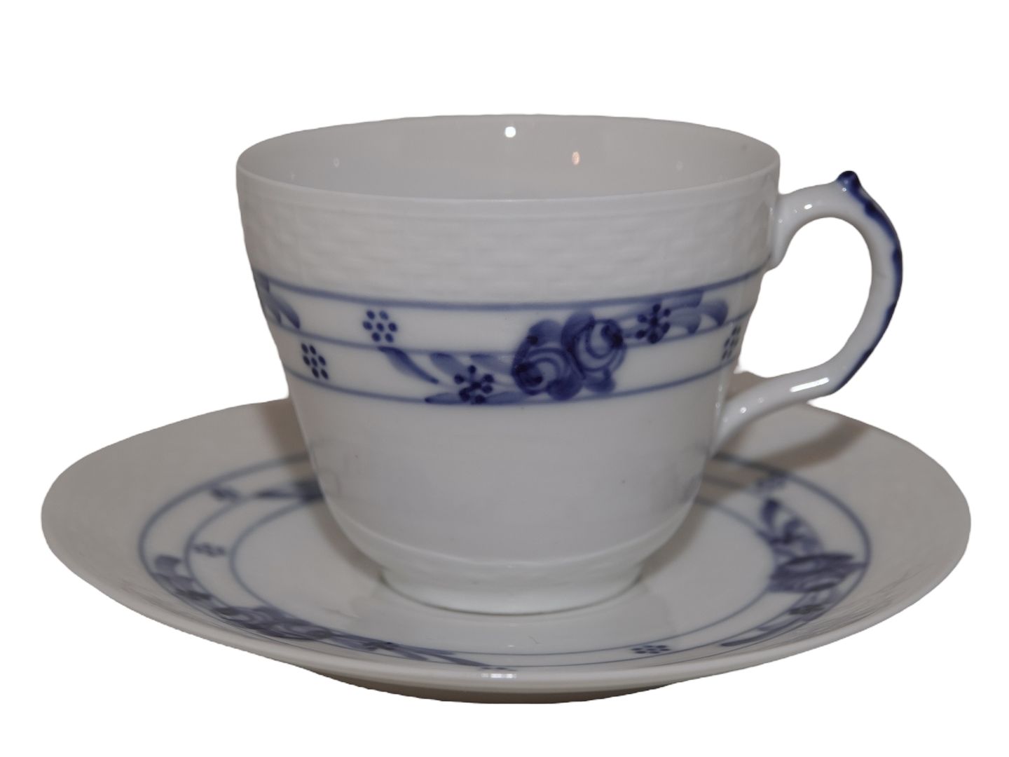 Royal Copenhagen Rosenknob (også kaldet Blå Rose), lille espressokop med underkop i ekstra tyndt porcelæn.