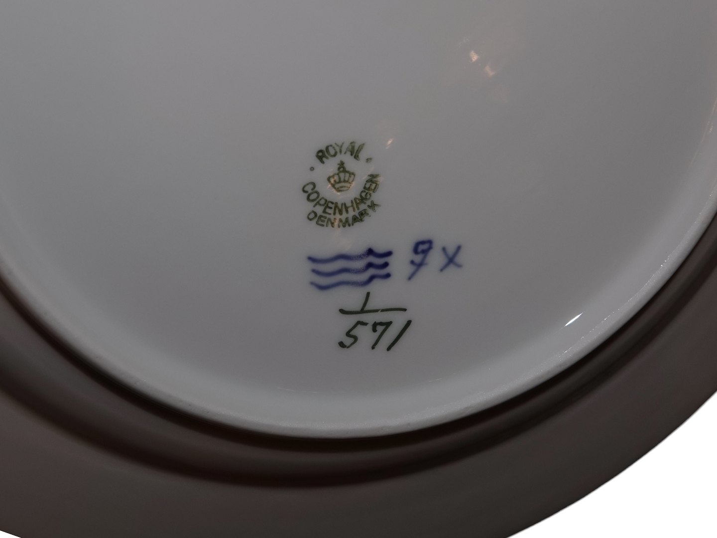 Royal Copenhagen Musselmalet Halvblonde, stor middagstallerken Dekorationsnummer 1/571. 2. sortering. Diameter 25,5 cm. Perfekt stand uden fejl.