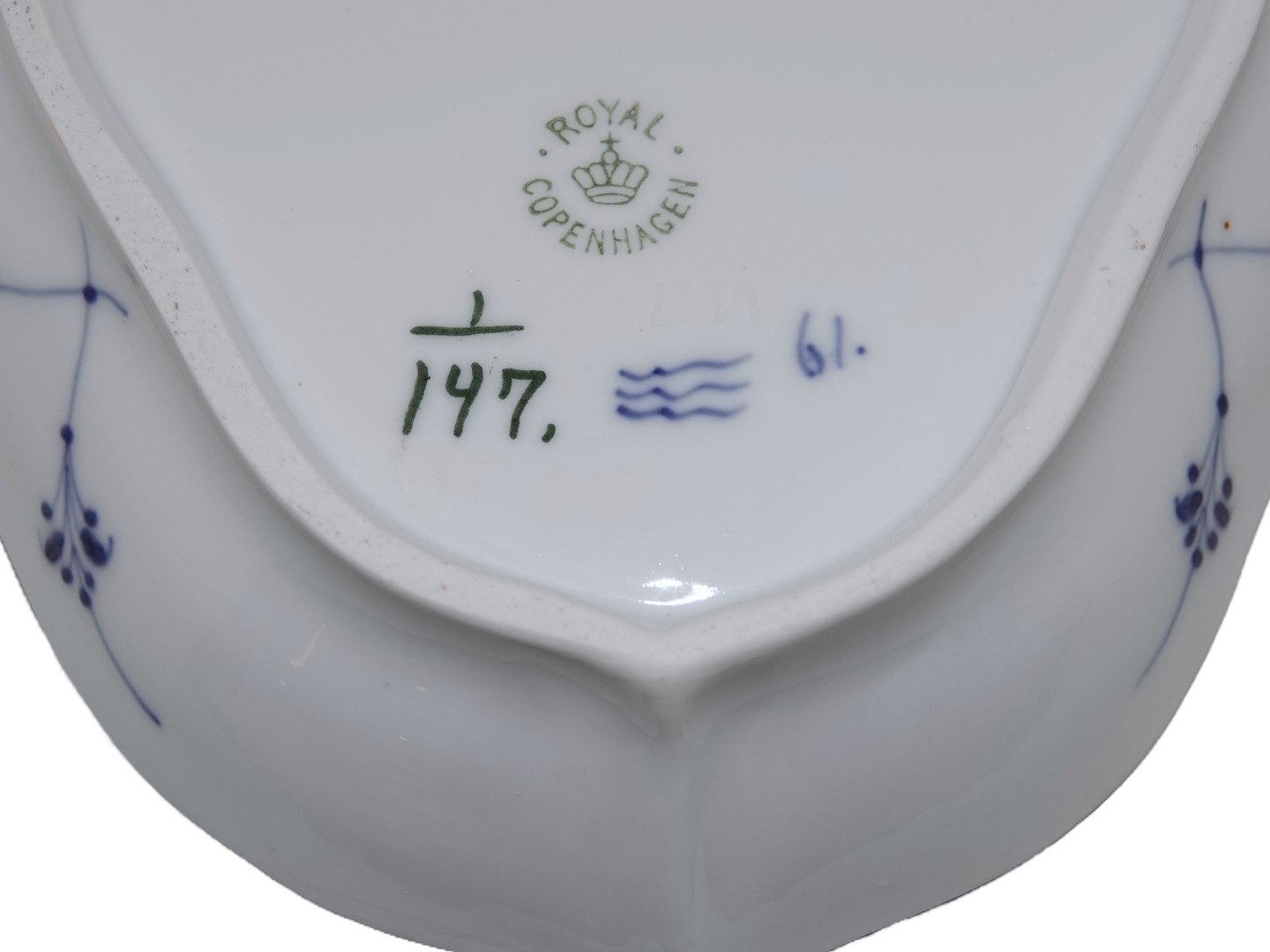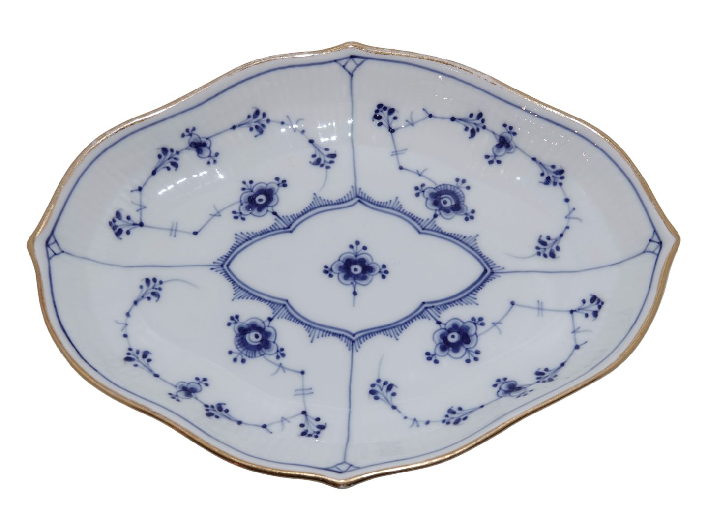Royal Copenhagen Musselmalet Riflet med guldkant, asiet.