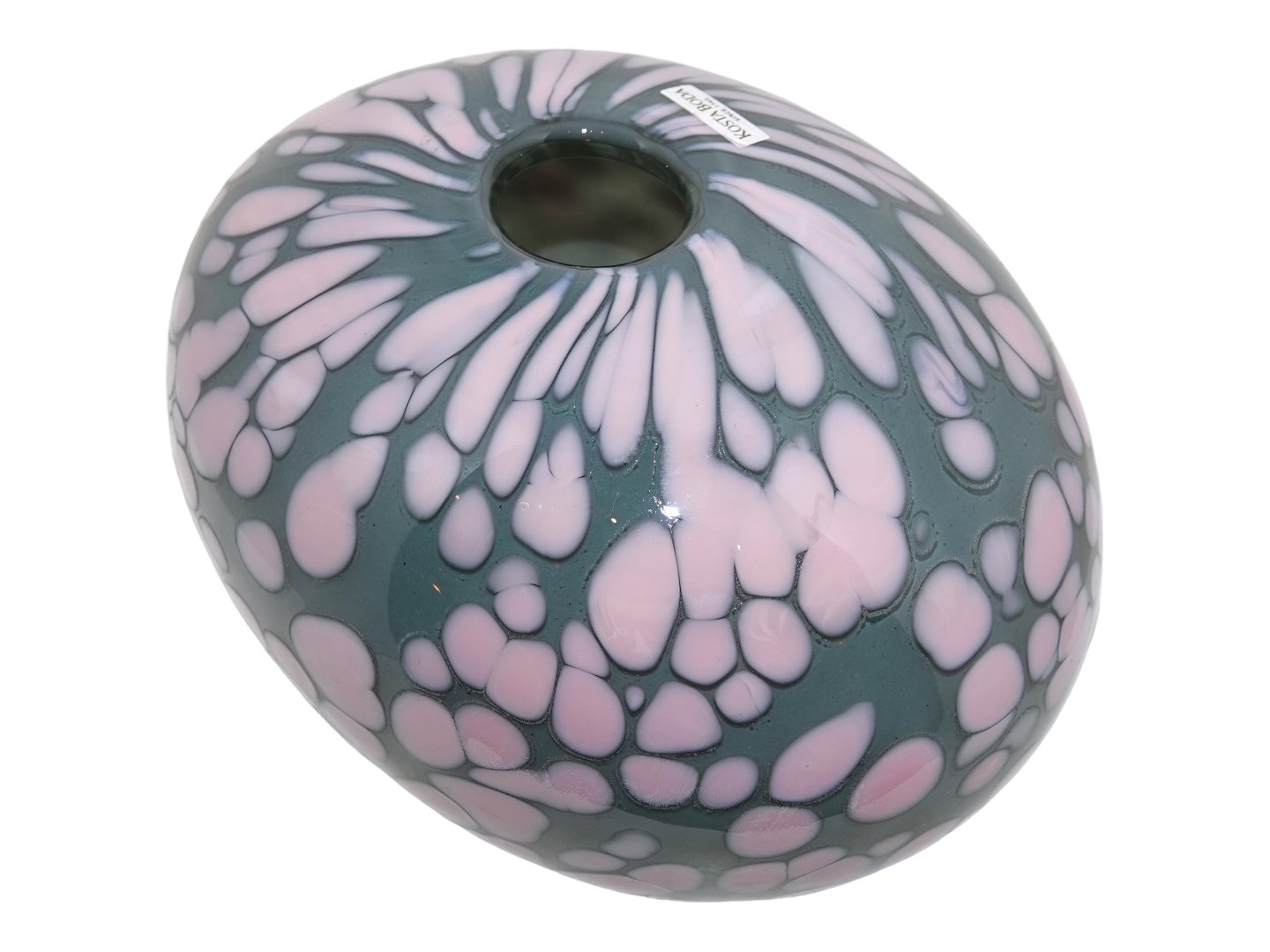 Kosta Boda Sverige, prøve vase med lyserød dekoration. Signeret "PRÖV ANN WÄHLSTRÖM". Længde 19,0 cm., højde 12,0 cm. Perfekt stand.