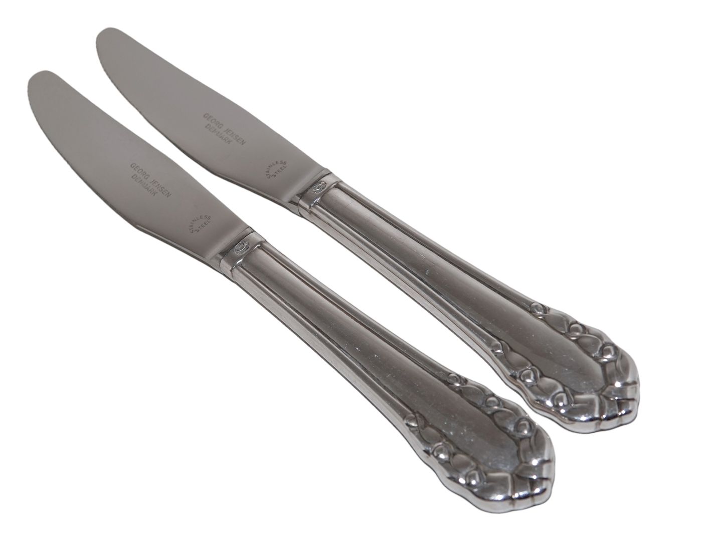 Georg Jensen Liljekonval Sterlingsølv og rustfrit stål, frokostkniv med kort knivblad. Længde 20,5 cm., heraf måler knivbladet 10,2 cm. Velholdt stand uden indgraveringer.