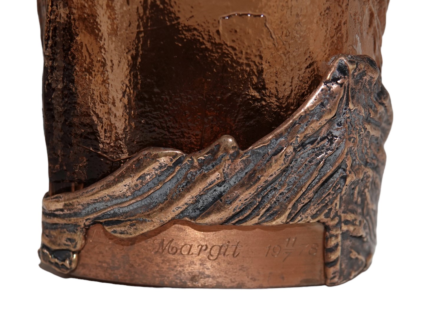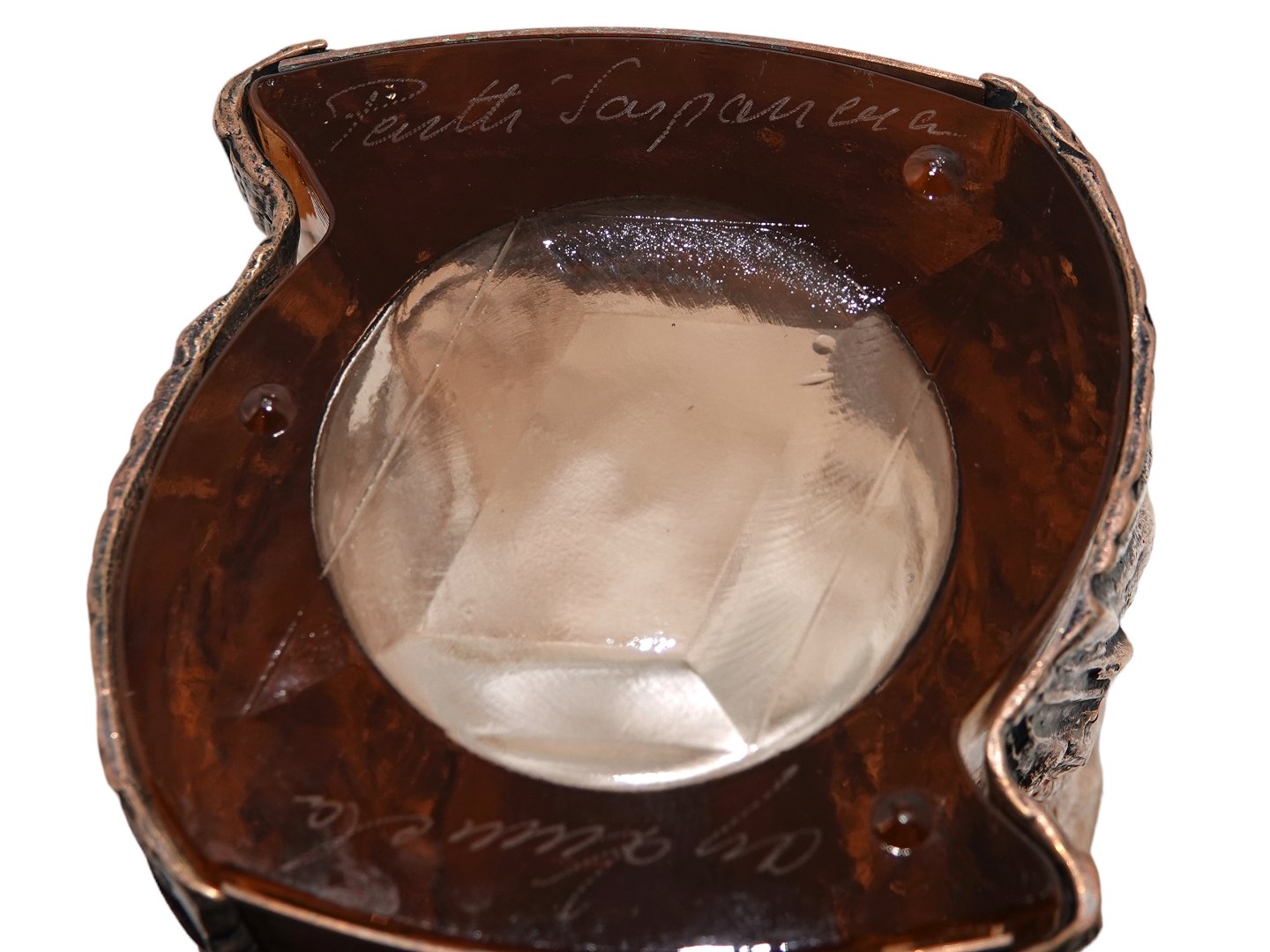 Oy Kumula Finland, vase with brass mounting by Pentti Sarpaneva. Fully signed "Oy Kumula" and "Pentti Sarpaneva". Height 21.1 cm. The brass mounting has two labels also in brass. These are engraved. Perfect condition.
