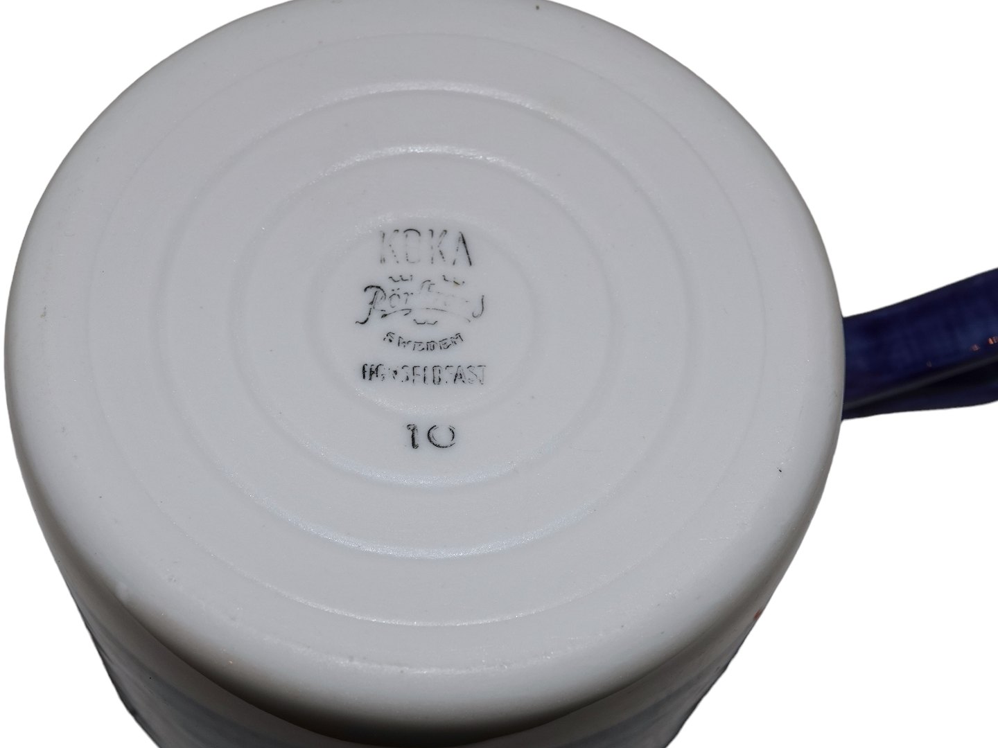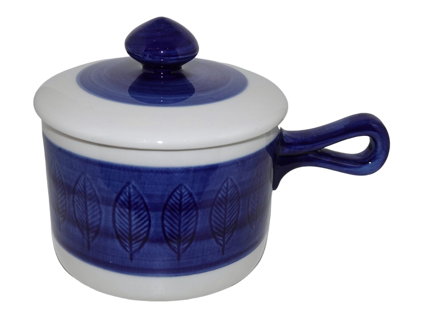 Rörstrand (Rørstrand) Blå Koka, ovnfast lille rund gryde med låg. Dekorationnummer 10. Diameter 13,0 cm., højde 9,3 cm. Perfekt stand uden fejl.