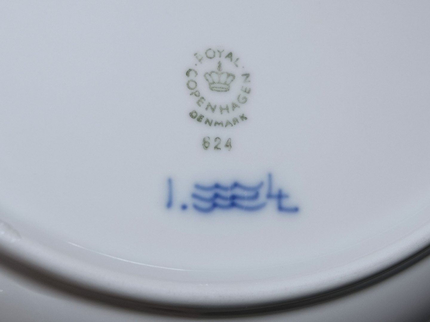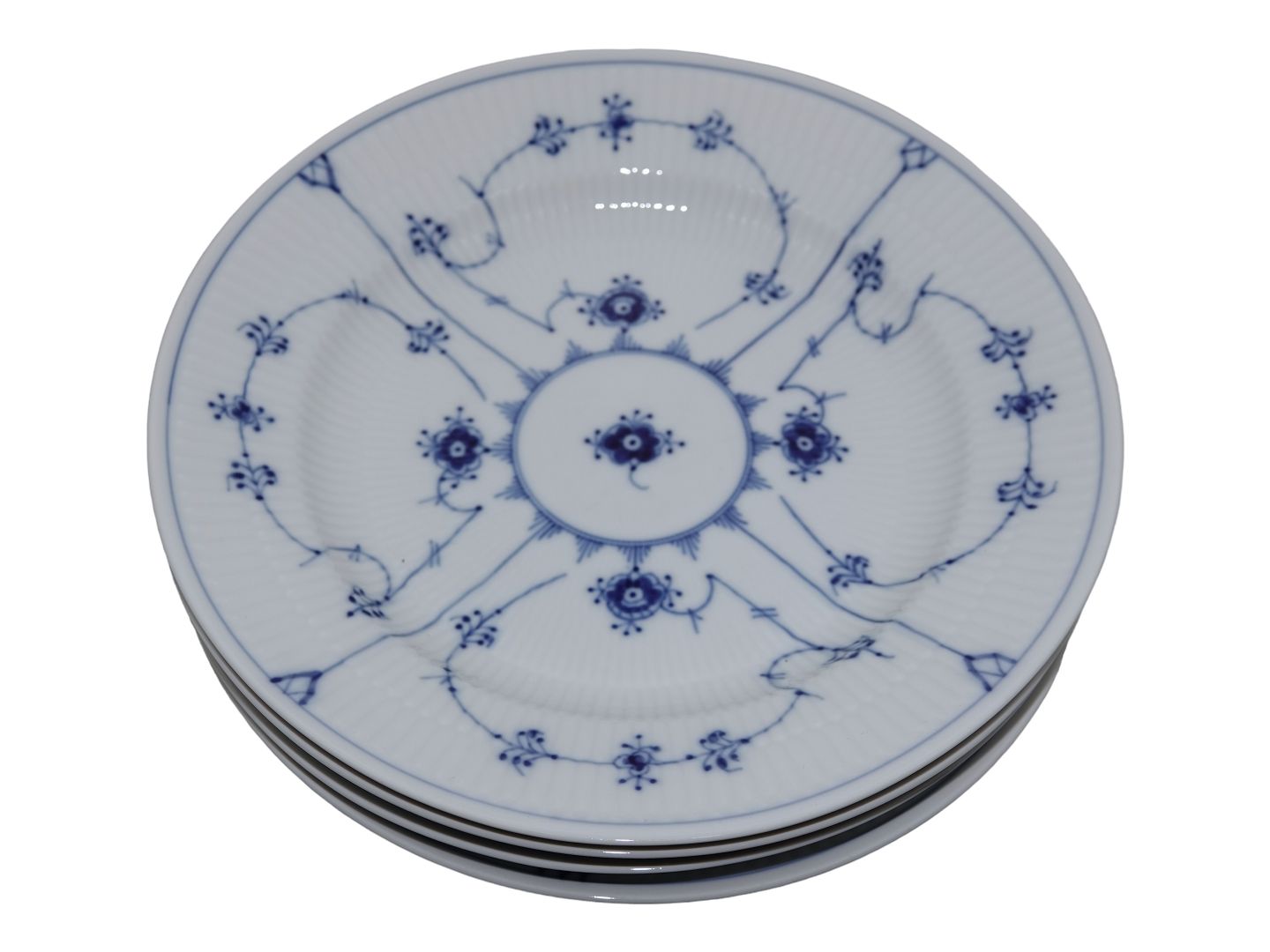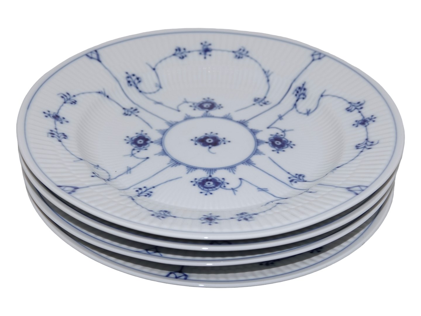 Royal Copenhagen Musselmalet Riflet, stor middagstallerknen. Dekorationsnummer 624. De er nyere men er produceret i Danmark. 2. sortering. Diameter 25,5 cm. Perfekt stand.