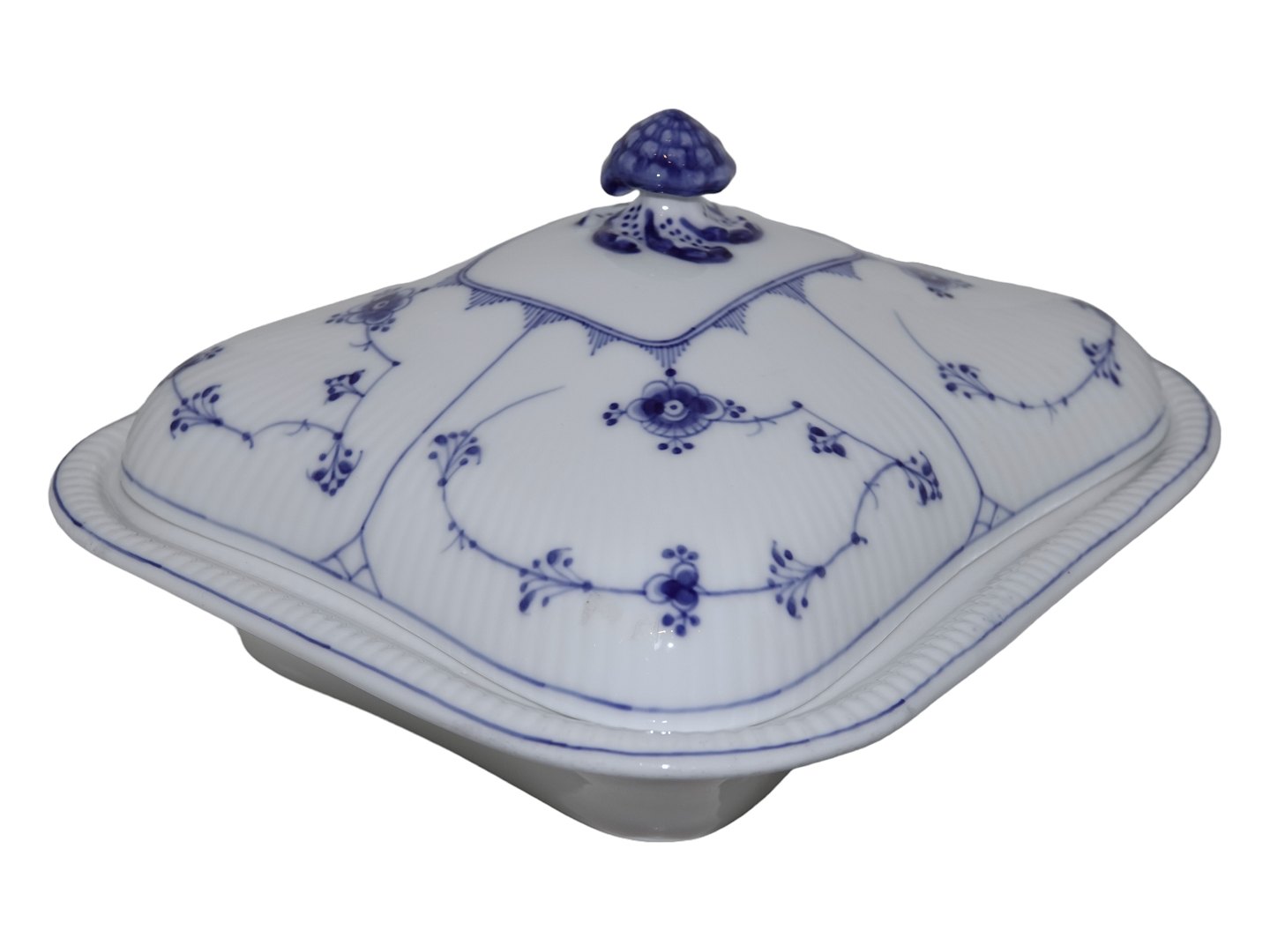 Royal Copenhagen Musselmalet Riflet, sjældent firkantet lågfad.
