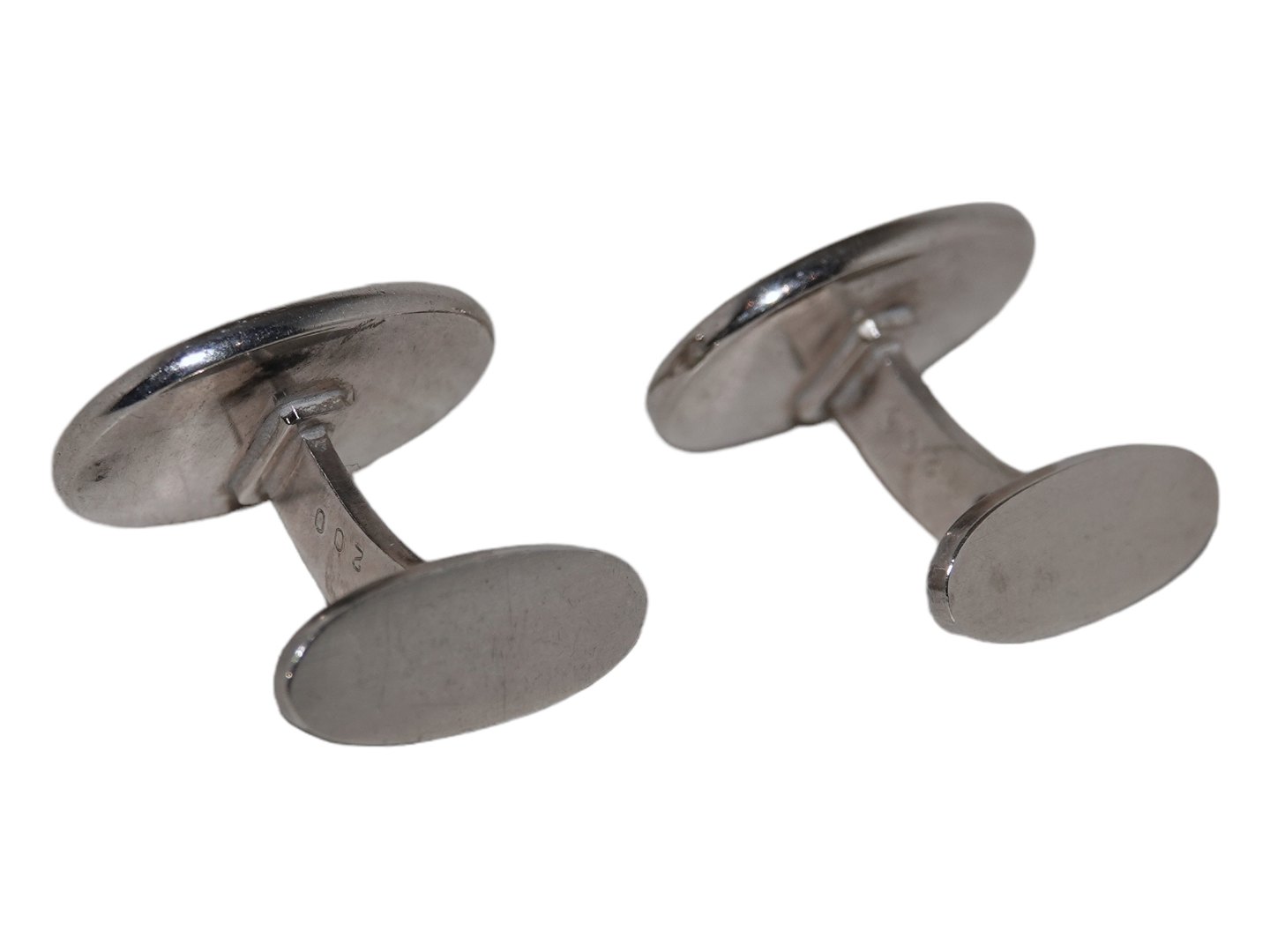 Georg Jensen sterlingsølv, manchetknapper. Designnummer 200. Designet af Andreas Mikkelsen. Disse er produceret efter 1945. Selve manchetten måler 2,0 x 1,5 cm. Perfekt stand.