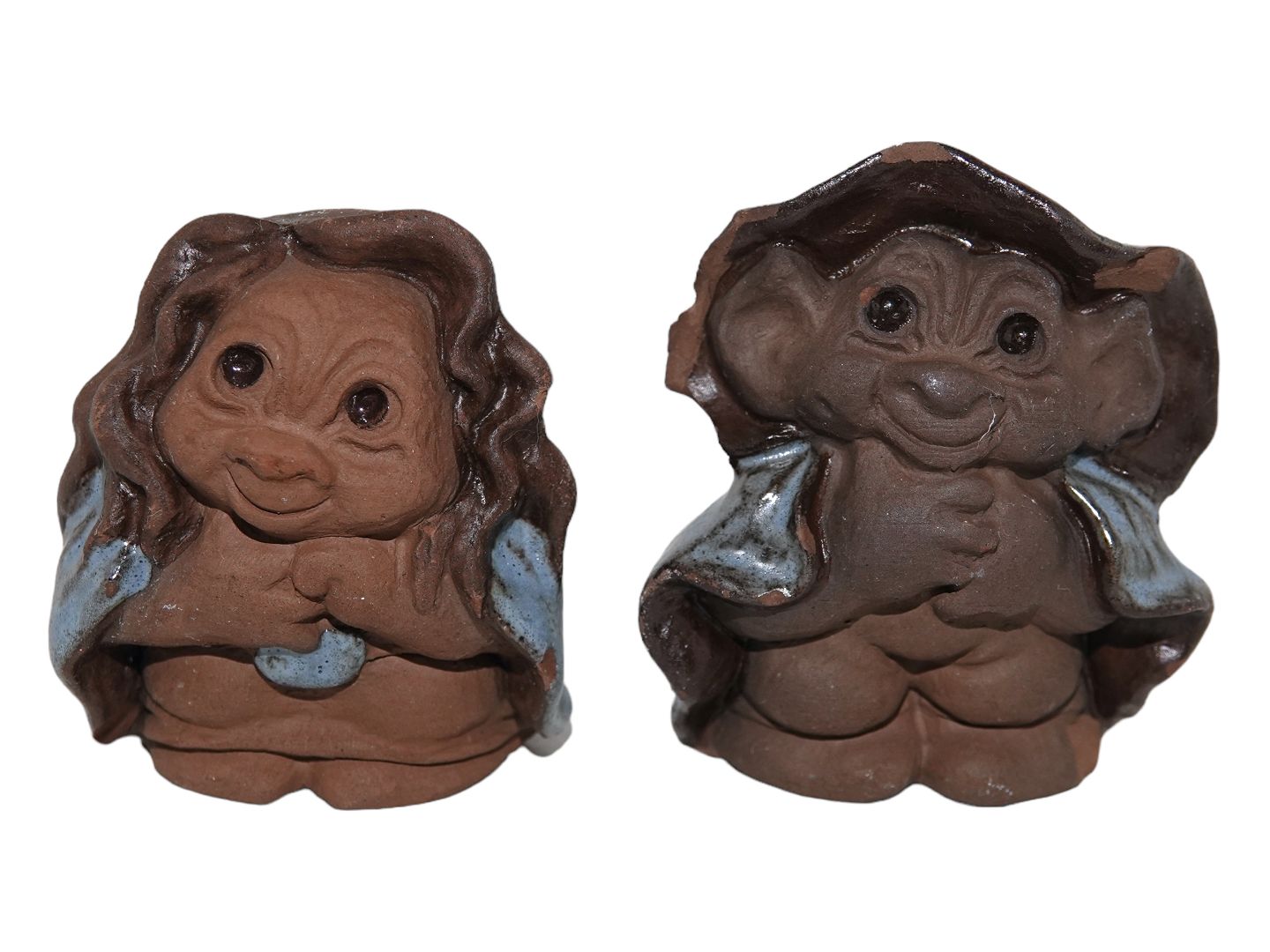 The boy troll has a large chip at the top, please see picture. The girl has two small chips on the dress.