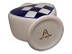 Aluminia blåt julehjerte. 1. sortering. Højde 7,5 cm. Der er lidt misfarvninger i toppen samt krakkeleringer i glasuren ellers perfekt stand uden fejl.