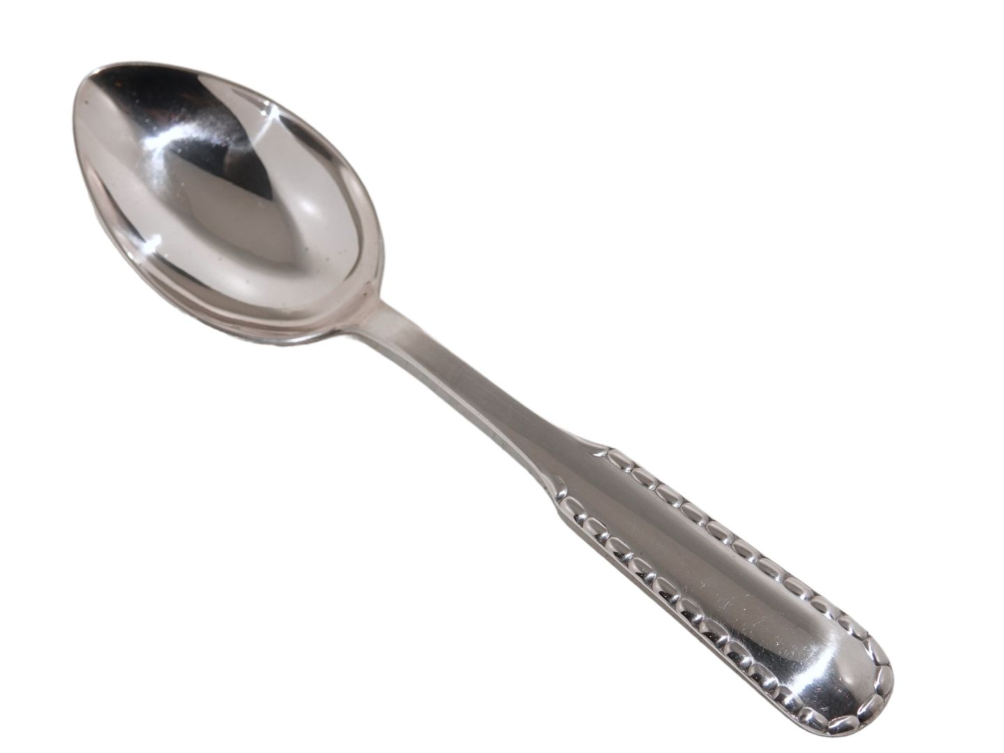 Georg Jensen Perle sterling sølv, suppeske. Denne er tidlig og produceret mellem 1915 og 1932. Længde 19,8 cm. Velholdt stand uden indgraveringer.