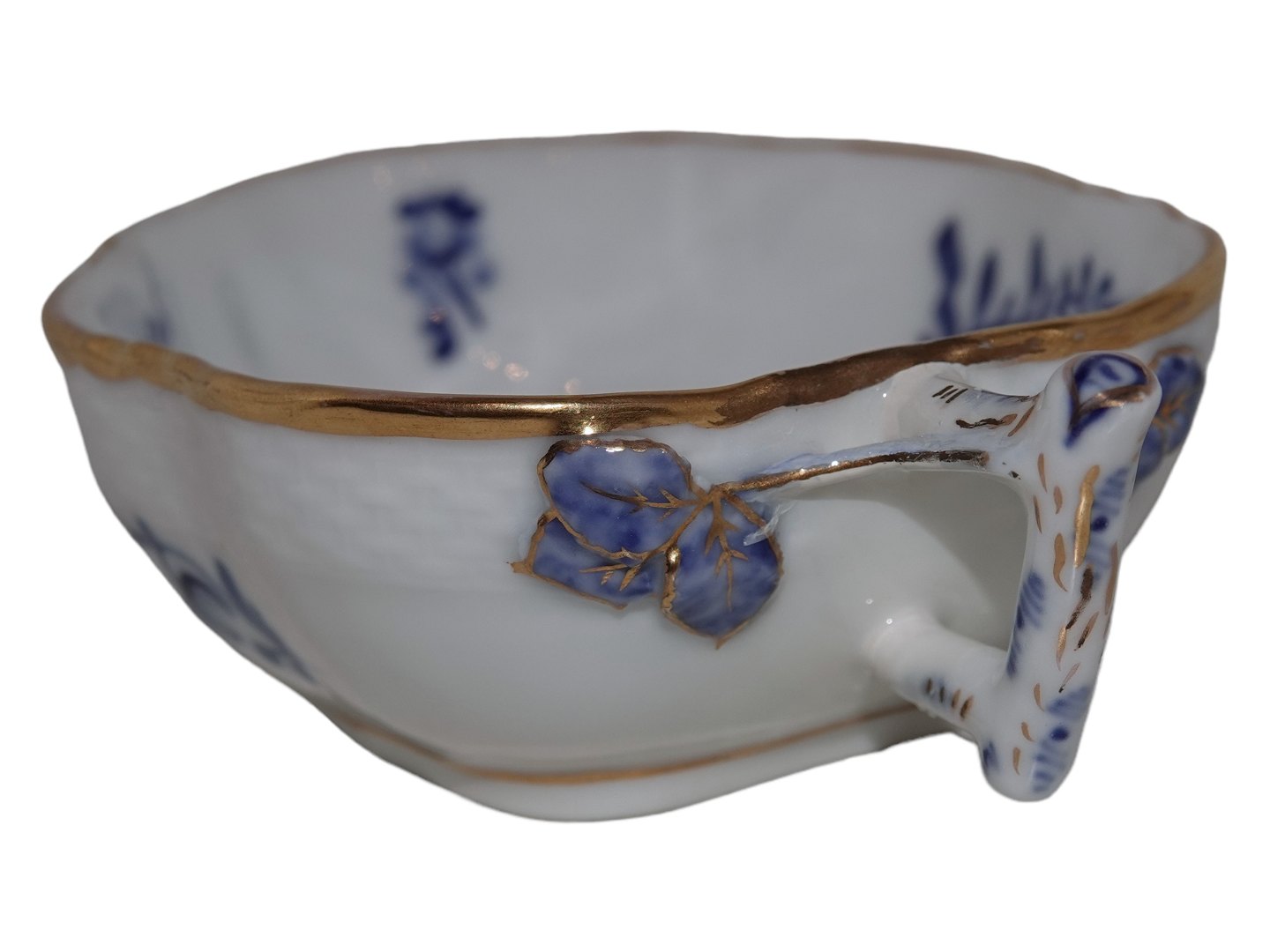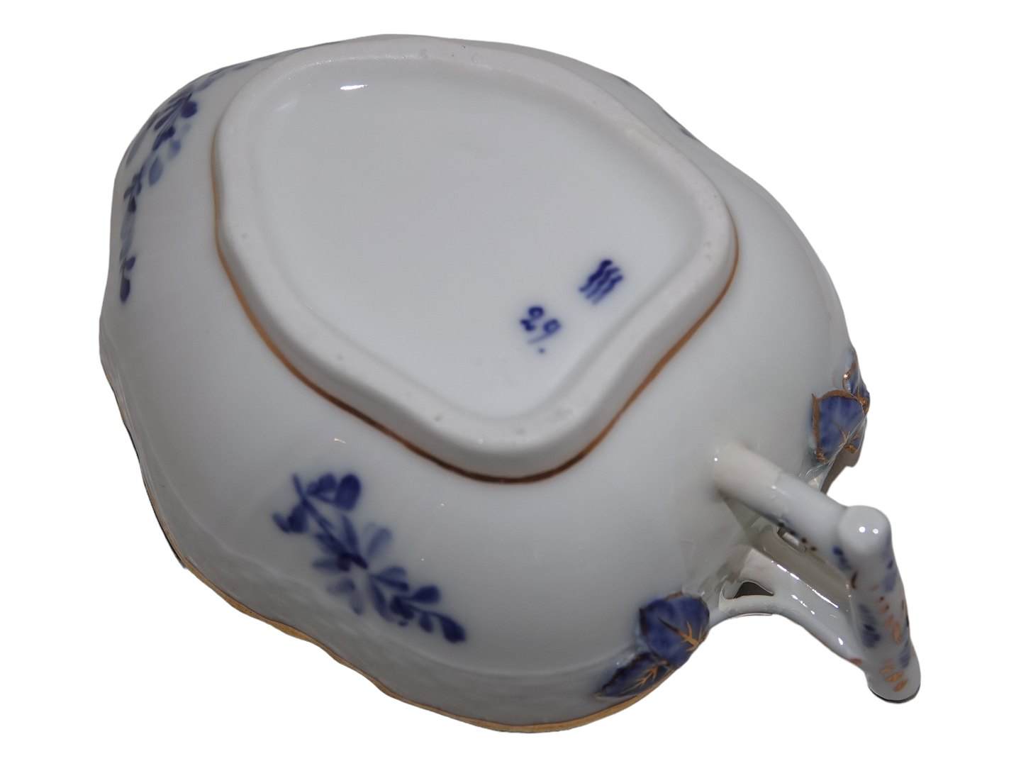 Royal Copenhagen Blå Blomst Svejfet med guldkant, sjælden asiet med grenhank.