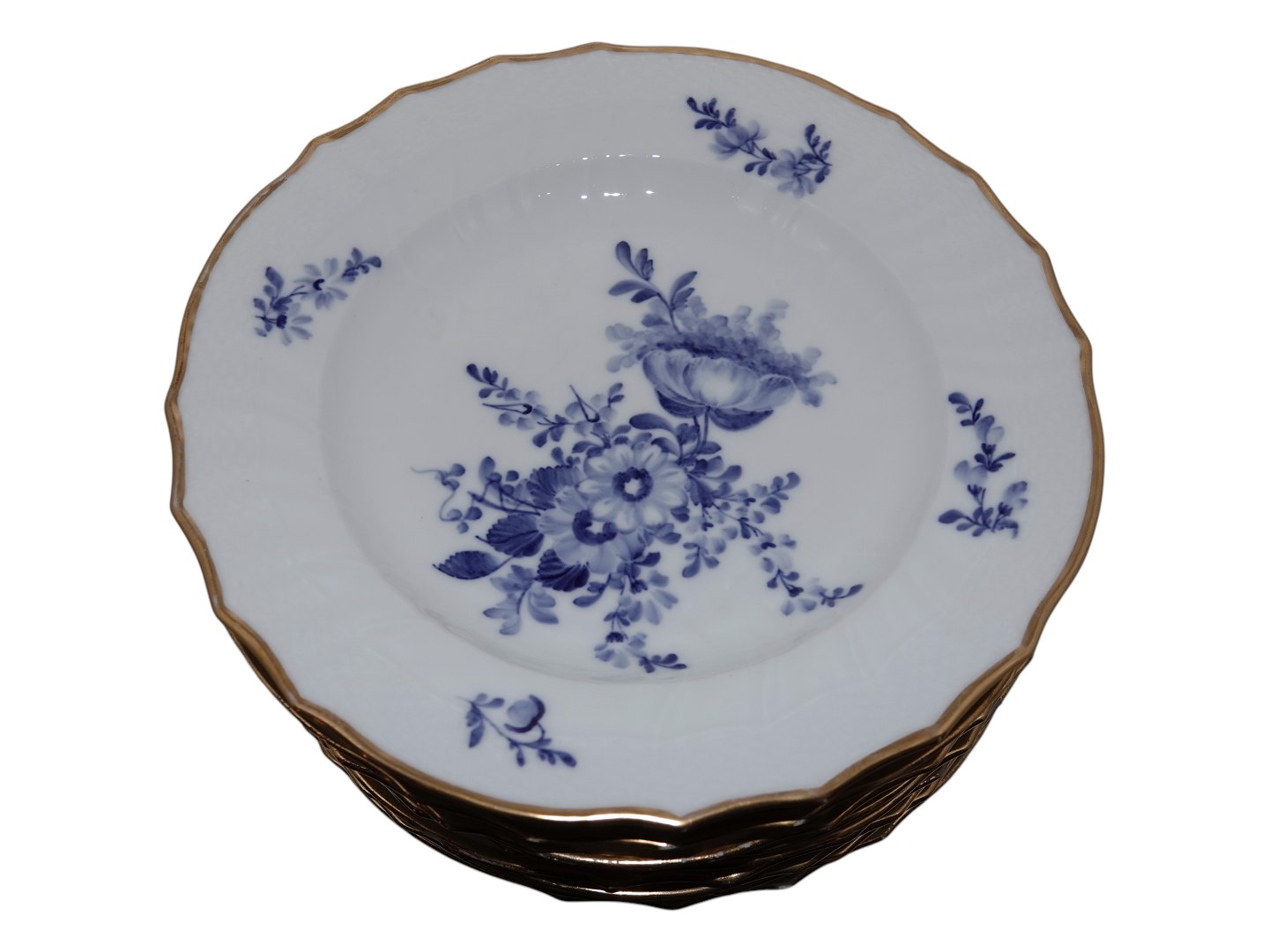 Royal Copenhagen Blå Blomst Svejfet med guldkant, middagstallerken.