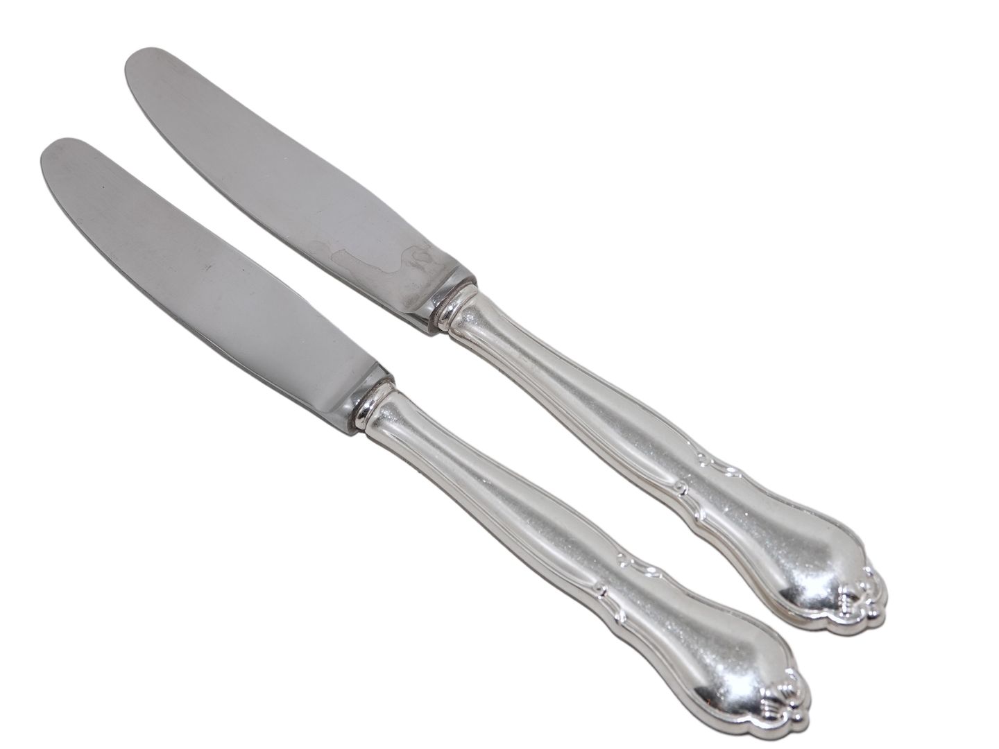 Rita tretårnet sølv, frokostkniv. Udført hos Horsens Sølvvarefabrik med knivblade fra Raadvad. Længde 18,8 cm., heraf måler knivbladet 8,9 cm. Velholdt stand uden indgraveringer.