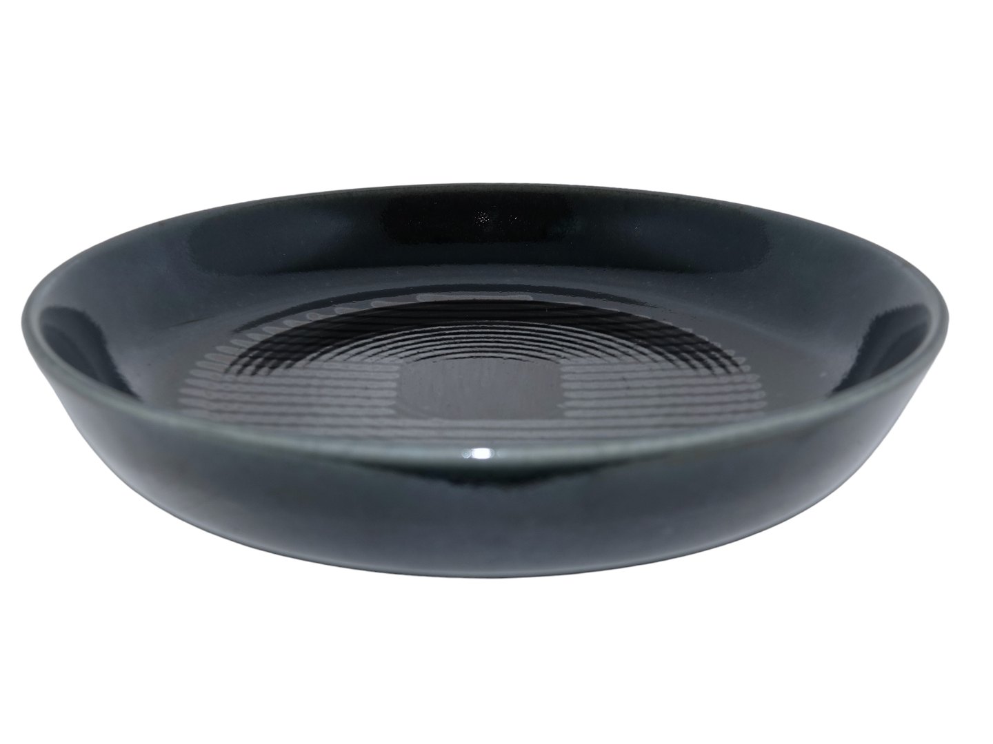 Royal Copenhagen keramik, unikt blågrønt fad med striber. Signeret "S". 1. sortering. Diameter 25,5 cm. Perfekt stand.