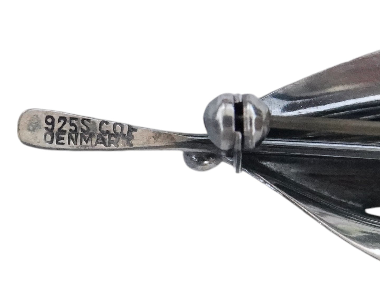 Danish sterlingsilver brooch with amber from around 1950 to 1970.