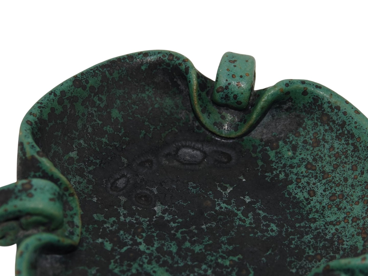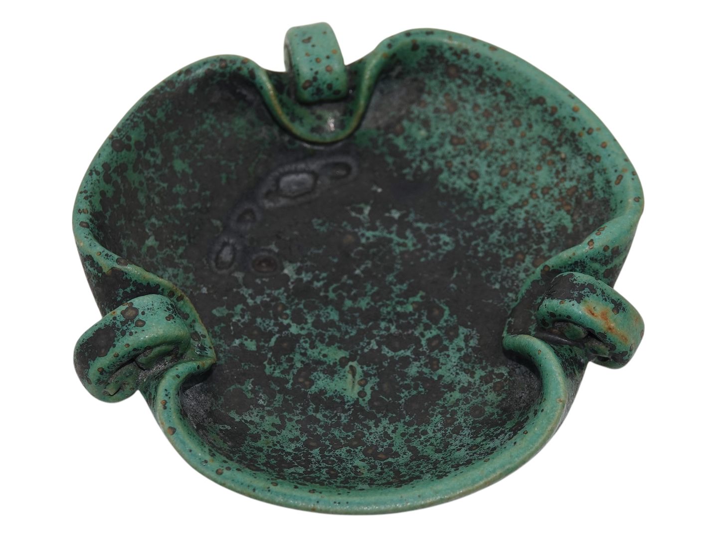 Arne Bang keramik, lille grøn asiet. Diameter 10,8 cm. Der er et par fordybninger i glasuren, se nærfoto, ellers perfekt stand.