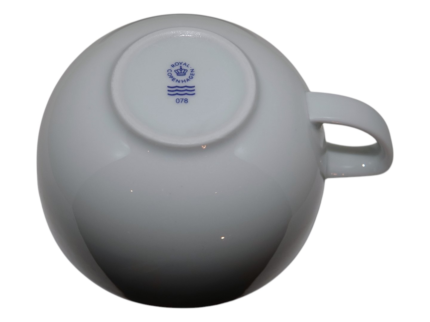 Royal Copenhagen Hvidpot, tekop med underkop. Designet af Grethe Meyer. Dekorationsnummer 6232 eller nyere nummer 078. Koppens diameter er 10,0 cm. Perfekt stand uden fejl.