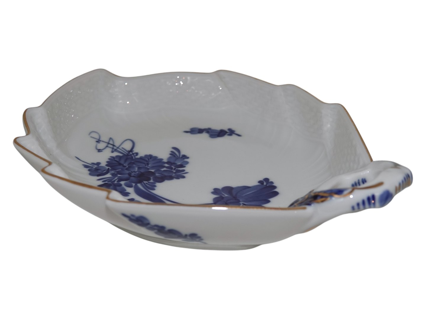 Royal Copenhagen Blå Blomst Svejfet med guldkant, fad med hank.