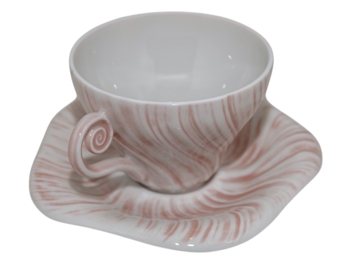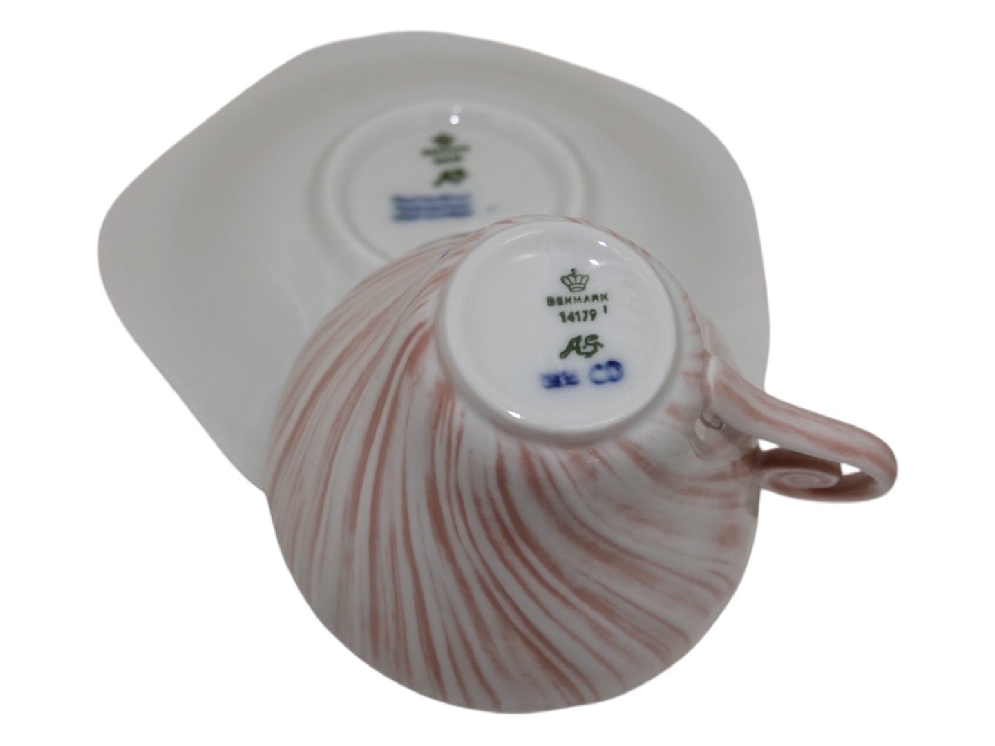 Royal Copenhagen Rosa Konkylie, lille kaffekop med tilhørende underkop. Designet af Arje Griegst i 1975. Dekorationsnummer 14179. 2. sortering. Koppen måler 7,4 cm. i diameter. Perfekt stand uden fejl.