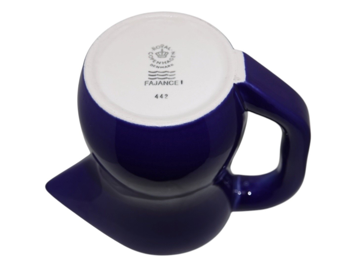 Royal Copenhagen Ursula, mørkeblå mælkekande. Dekorationsnummer 442. Medarbejdersortering. Højde 12,6 cm. Perfekt stand uden fejl.