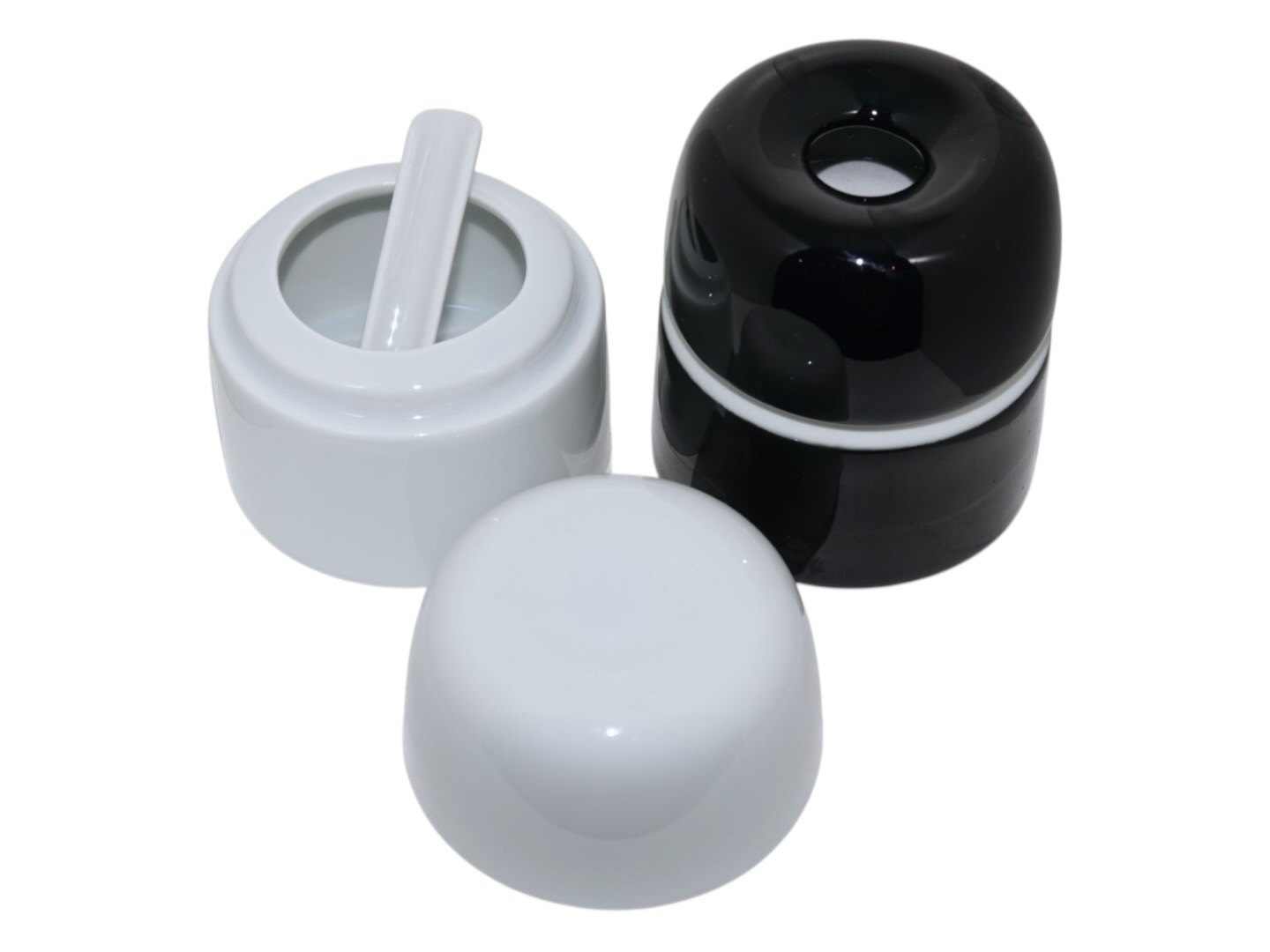 Bing & Grøndahl porcelæn, peberkværn og saltkar med tilhørende saltske. Dekorationsnummer 864 og 852. 1. sortering. Højde 7,8 cm. Perfekt stand. Prisen er for begge.