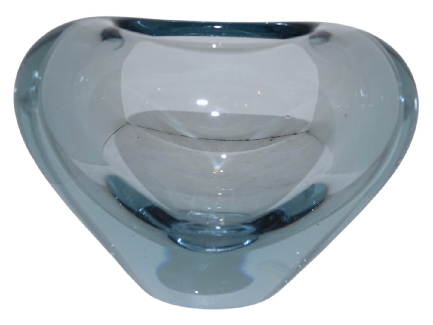Holmegaard lyseblå hjertevase designet af Per Lütken. Fuldt signeret og dateret 1959. Længde 14,0 cm., højde 10,0 cm. Fin fejlfri stand.