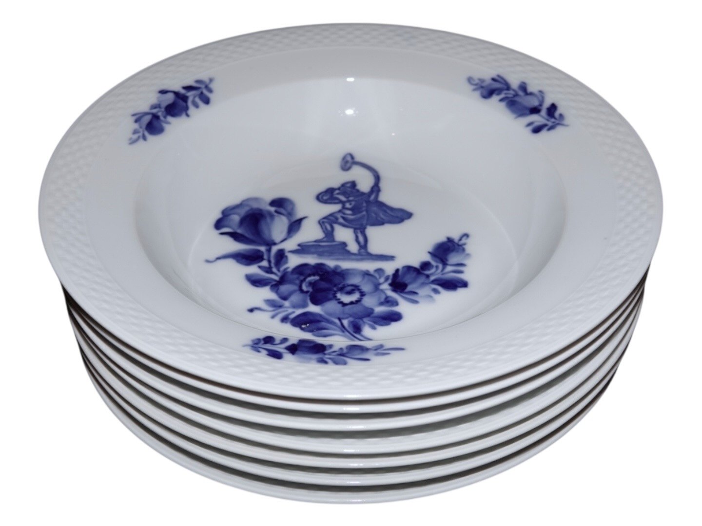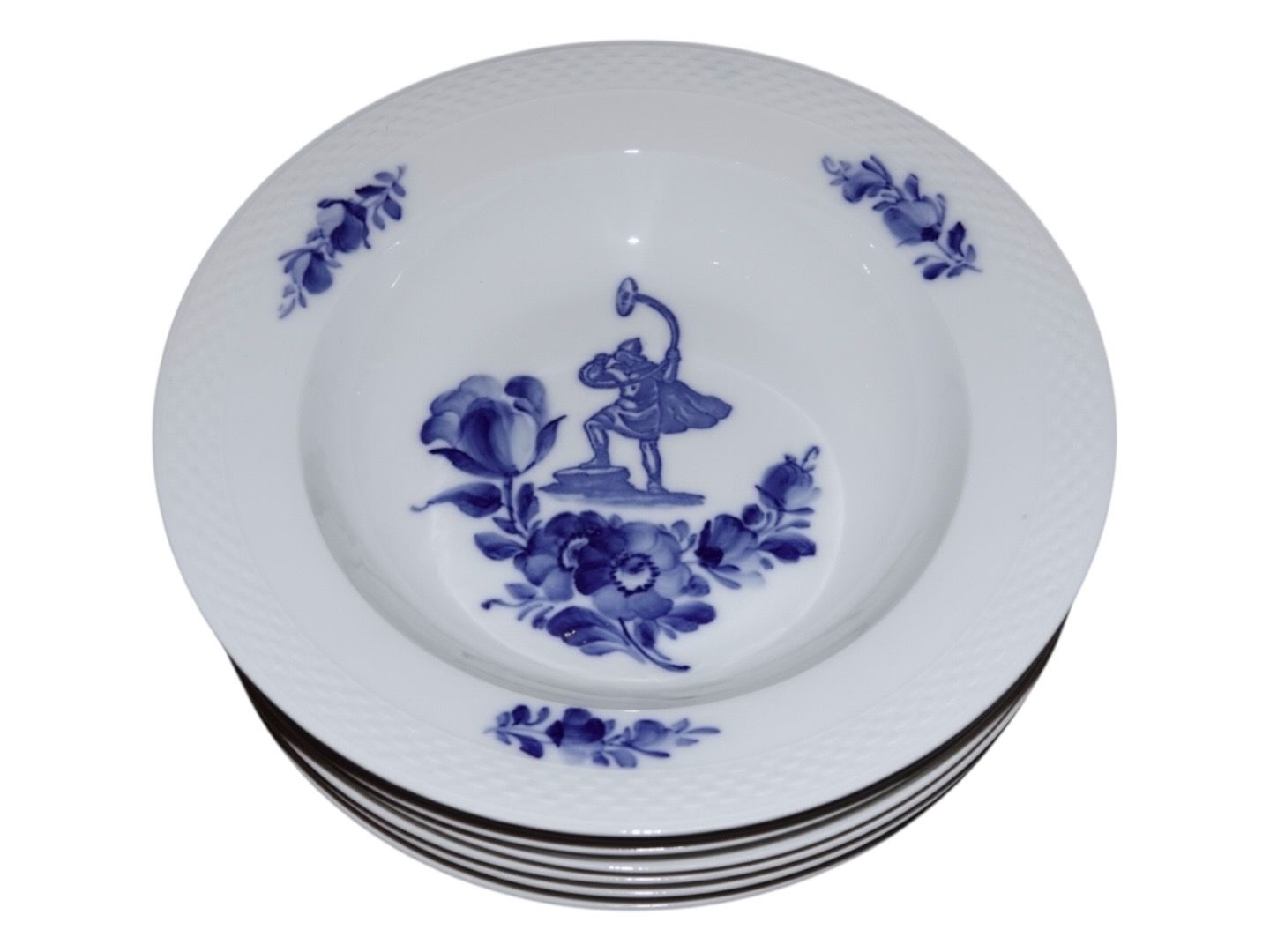 Royal Copenhagen Blue Flower Braided with man with a horn, large soup plate.