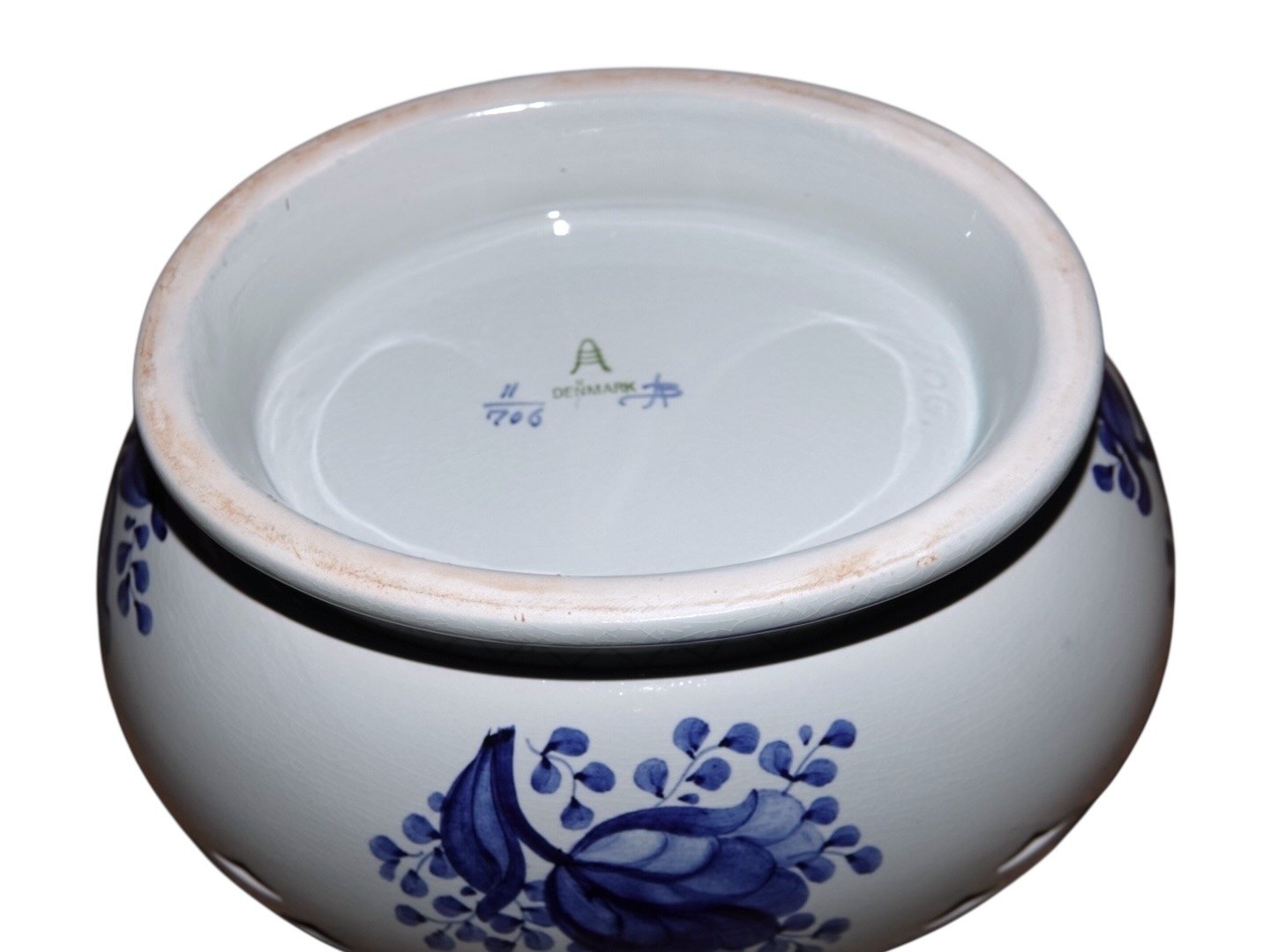 Aluminia - Royal Copenhagen Tranquebar jardiniere with pierced edges.