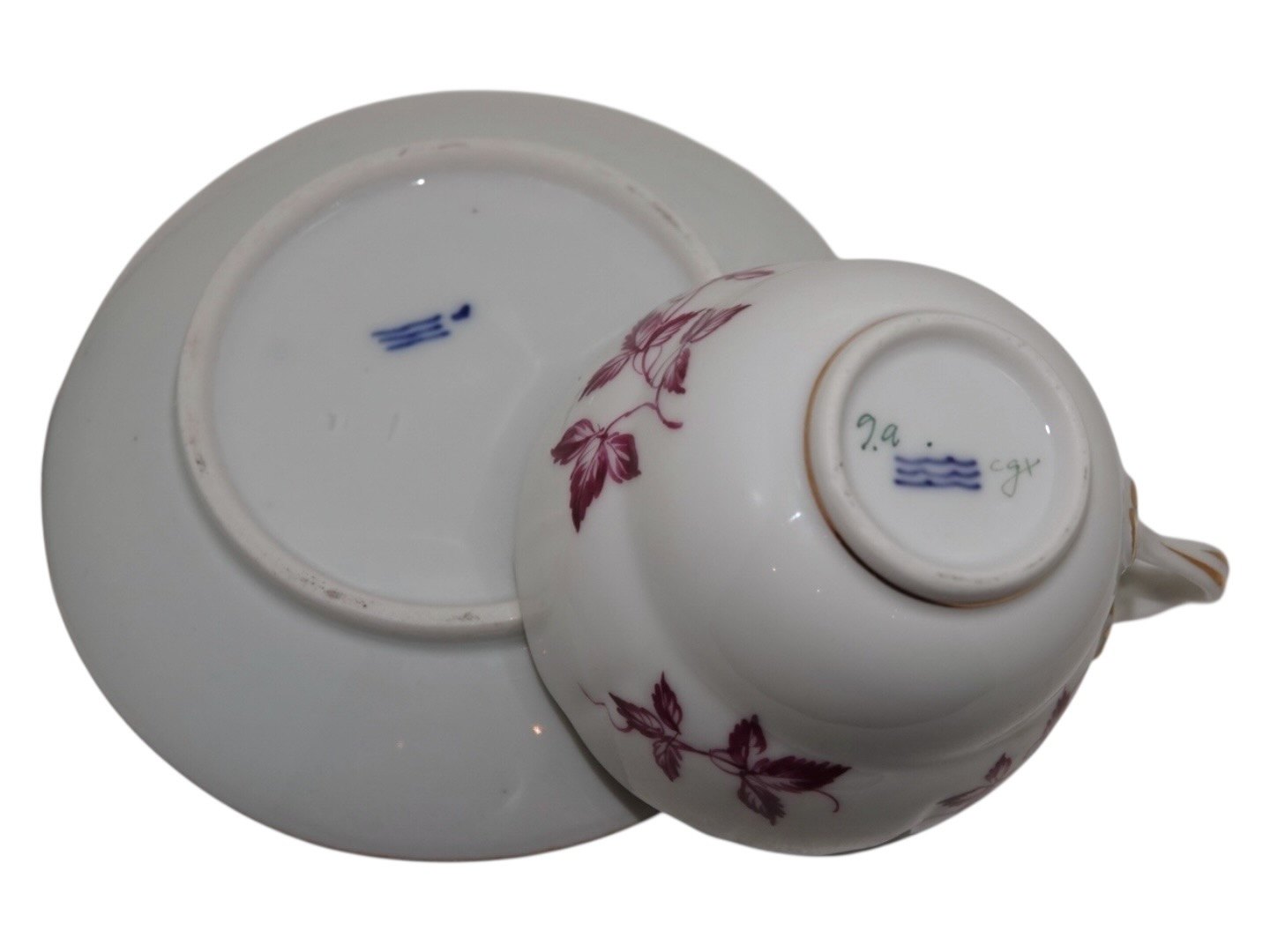 Royal Copenhagen Kaffekop og tilhørende underkop med purpur dekoration fra omkring 1890'erne.