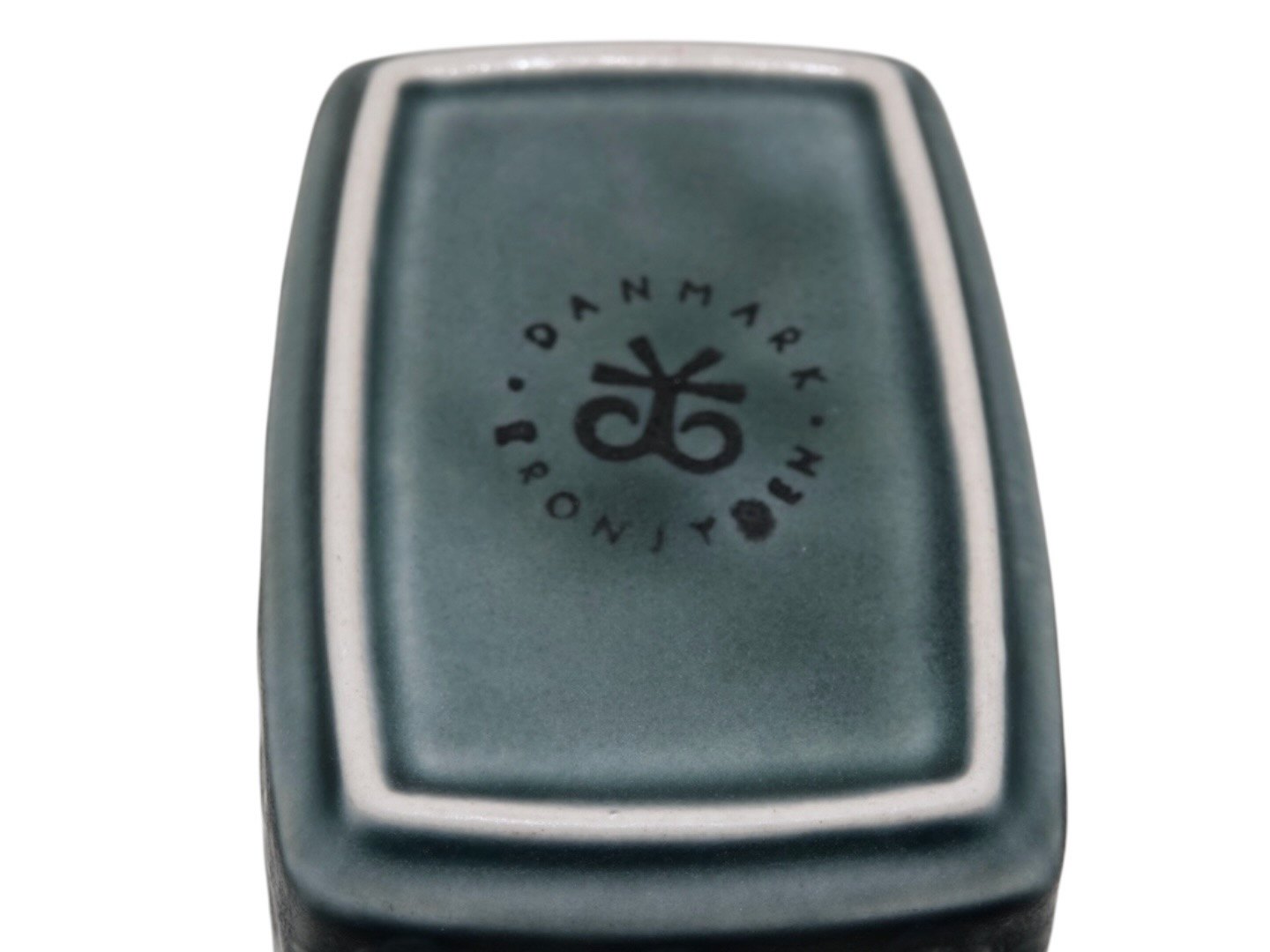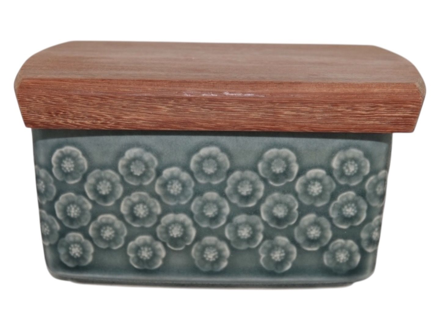 Kronjyden Grøn Azur stentøj, smørskål med trælåg.