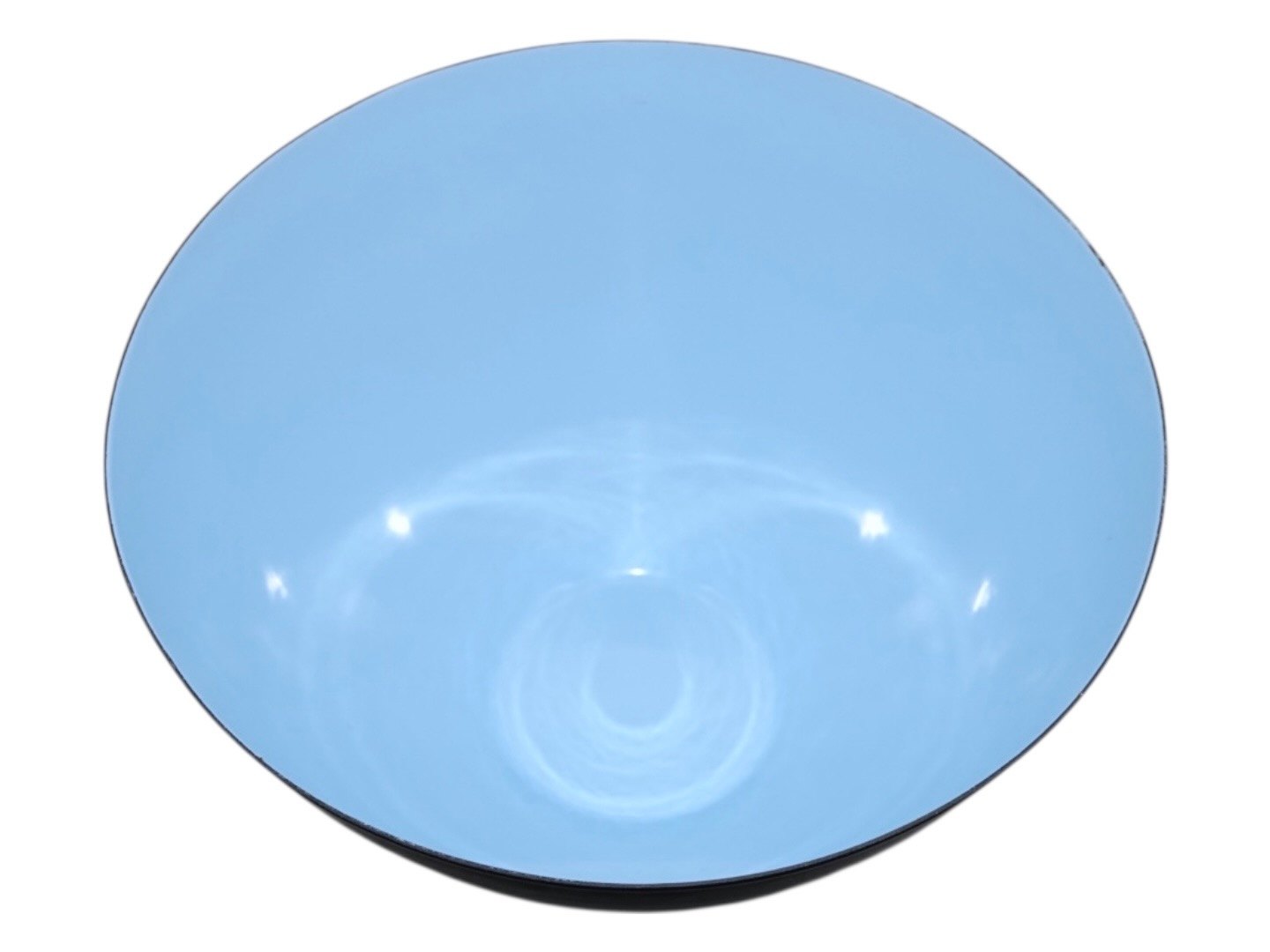 Herbert Krenchel, large krenit bowl with light blue enamel. Danish Modern from the 1950'es. Diameter 25.0 cm. height 14.0 cm. There are a few tiny marks on the edge otherwise very well kept condition.